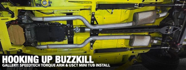 We’re back working on our 1970 Dodge Super Bee, better known here at Mopar Connection Magazine as Buzzkill. In the last article, we finished installing the Speedtech ExtReme front suspension system. This time, we’re moving to the back of the car and installing the Speedtech torque arm setup along with a US Car Tool mini-tub kit.