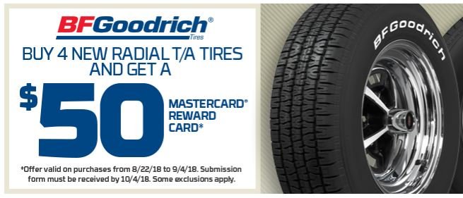 Do the safe, sensible thing and put a set of new shoes on the old street machine. Coker Tire is making the decision easy for a limited time with a $50 rebate on a set of BFGoodrich rolling stock through 9/4/18 or $70 back on four Michelin’s through 9/20/18.