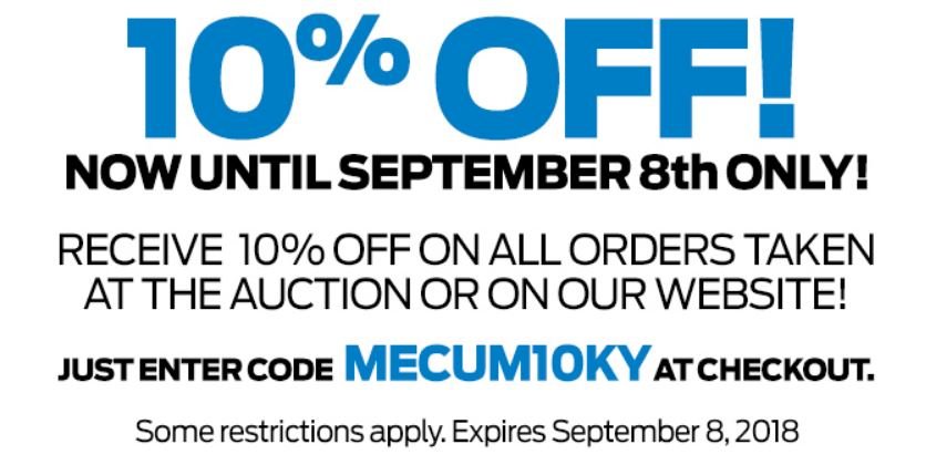 On top of that, they’re offering 10% off until 9/8/18 if you enter the promotion code MECUM10KY at checkout. Regardless of price, no one wants to be left stranded because a weather-cracked sidewall blew out. It’s not just a set of tires; it’s peace of mind and carefree cruising. And a screamin’ deal to boot!