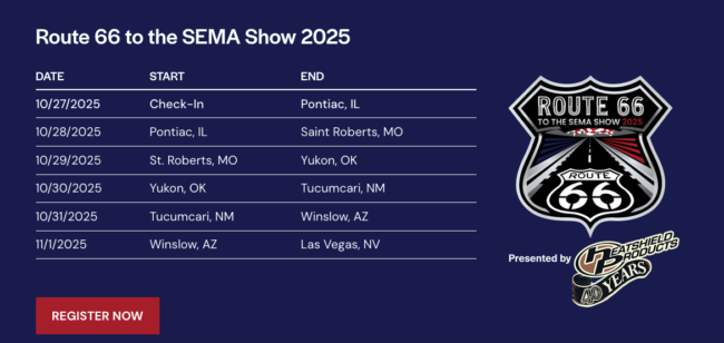 So not only will you be experiencing the time of your life driving the “Mother Road” in your favorite muscle car, but getting an exclusive hands-on look at the biggest private event in the hobby. Now that’s really special! All you need to do is register HERE or by clicking the route schedule image above. It’s really that easy!