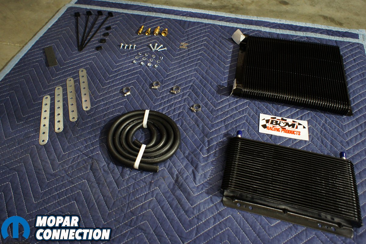 Above left: B&M Racing’s Supercoolers came with everything we needed to properly re-plumb our Orange Crush’s engine oil and power steering systems. Above right: We had the engine out of ‘Crush already, making installation and rerouting a little easier, but it’s not necessary.