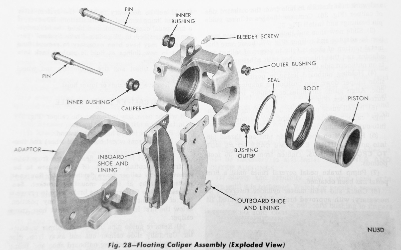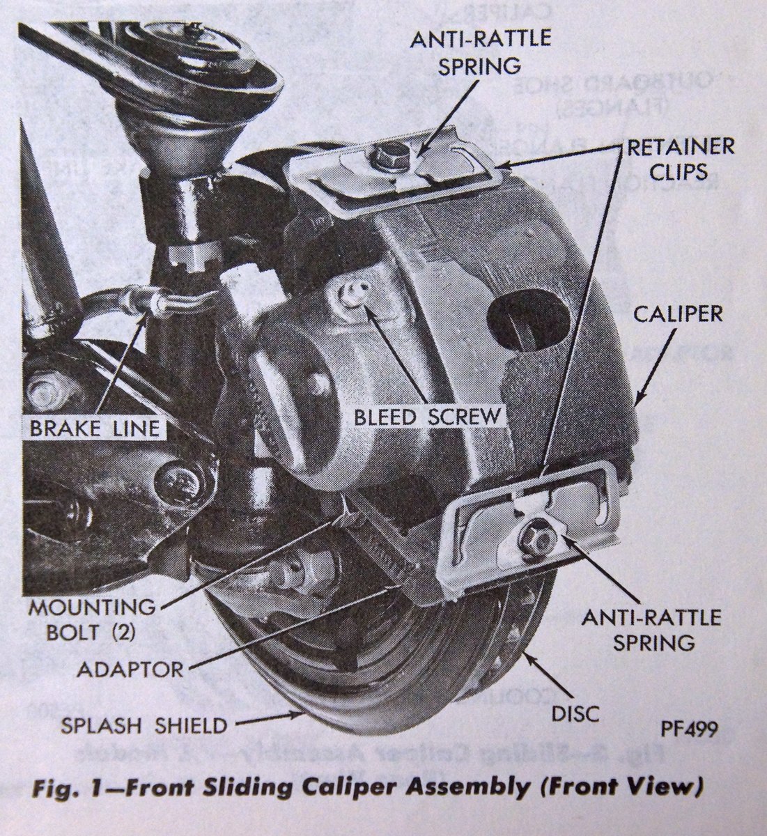 Above Left: Many of the 70s Mopars came equipped from the factory with floating front calipers. The floating design allows the caliper to move on an anchor plate without making metal-to-metal contact with it. The calipers are supported by bushings and O-rings that slide on guide pins and sleeves. Above Right: Floating calipers work well on daily drivers. They tend to have a single inboard piston, which reduces the chances of fluid leaks. The design is compact so that a small diameter wheel will fit over the caliper. But the floating calipers tend to flex or twist under extreme braking situations, which contributes to knockback and a soft pedal. The reduced mass of the caliper (compared to a fixed caliper) will not dissipate heat as effectively.