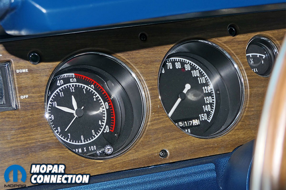 Under the hood came the R/T’s standard U-Code 440 Magnum engine and was backed with a console shifted 727 Torqueflite automatic transmission. Complementing the striking B7 Dark Blue exterior paint was a contrasting B5 blue leather interior accented by a classy white vinyl top. To keep with the classy theme, any type of exterior stripe was deleted for a clean and sleek look.