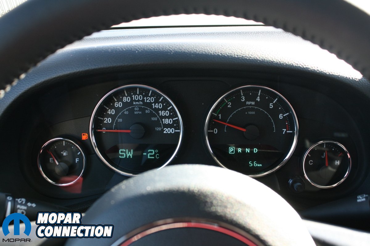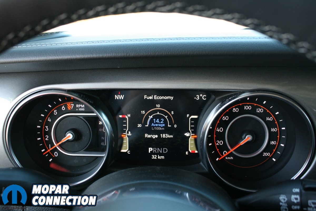Another huge upgrade with the JL is the gauge cluster and the center media unit. A brand new LED instrument cluster replaces the very outdated dot-matrix display found on the JK platform. This all new cluster features a 3.5- or an available 7-inch LED display. The 7-inch LED display allows the driver to configure information in more than 100 ways including current media being played, tire pressure, or digital speed readout. We really liked the advanced vehicle diagnostics found in the new cluster such as battery voltage, oil pressure and water temperature. The JL’s new cluster also features off-road screens such as Roll-Angles and other useful information for off-roading.