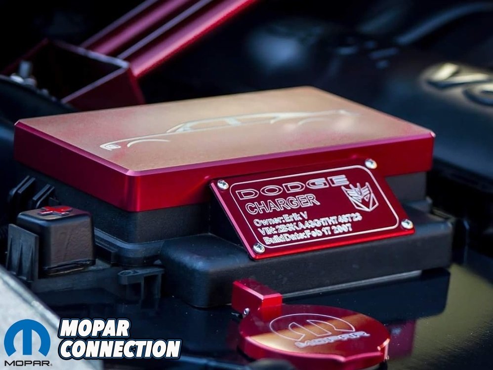 With his new 2007 Charger in his possession, Erik used it as his daily driver for quite some time. Fast forwarding to summer of 2008, Erik did what any natural car guy would do; he started modifying his Charger. Erik tells us, “I got an Air Raid cold air intake and put SRT8 exhaust on my car and then attended one of the local BCLX modern Mopar car meets. The meet opened my eyes up to the potential these vehicles had. I was able to see what other people were doing to them; from custom pin stripping to engine bay dress up and all sorts of other modifications. I swore I wouldn’t modify my Charger very much as it was my daily driver but these amazing people I got to meet up with and enjoy the cars with quickly changed my mind on that.”