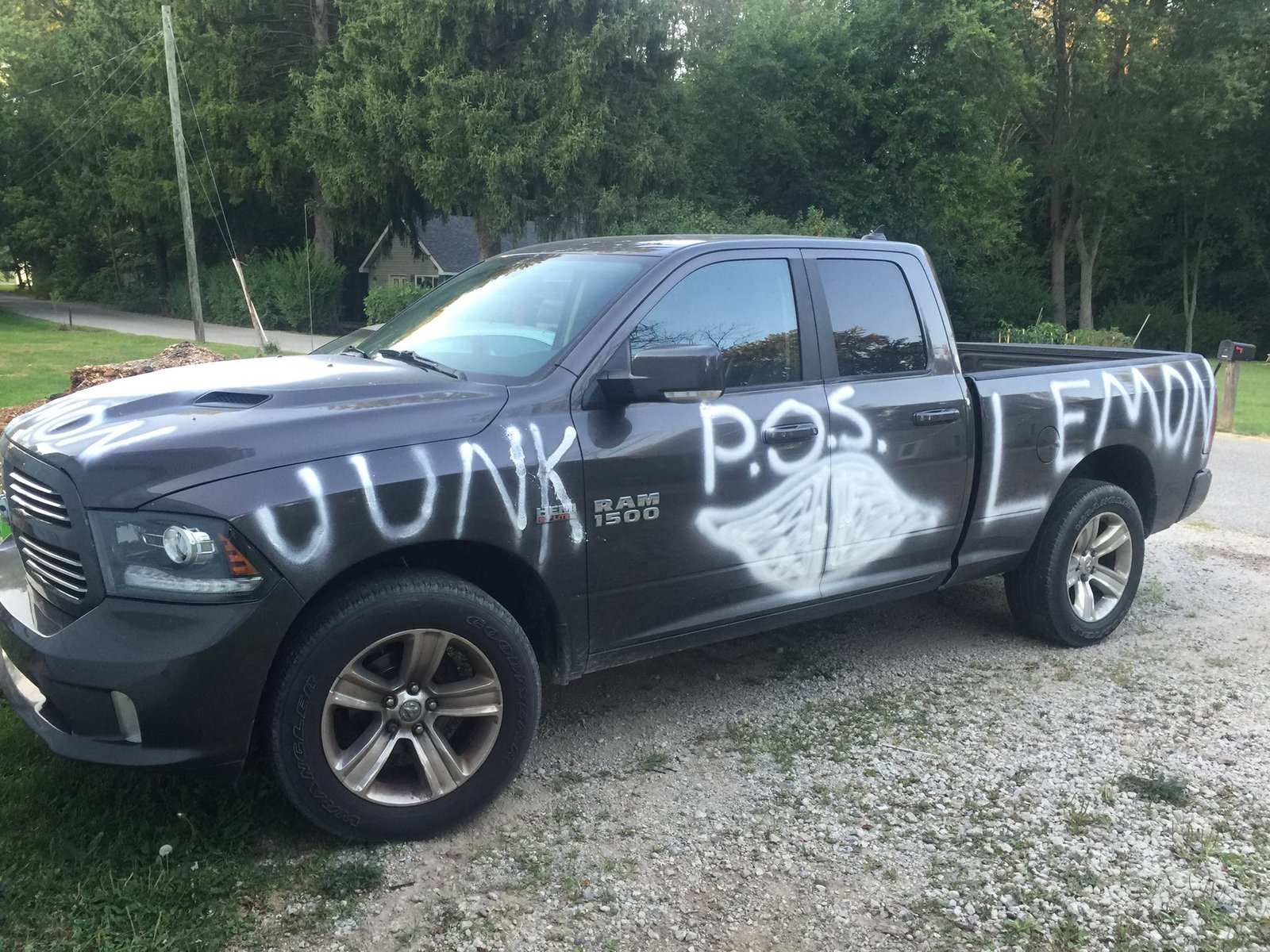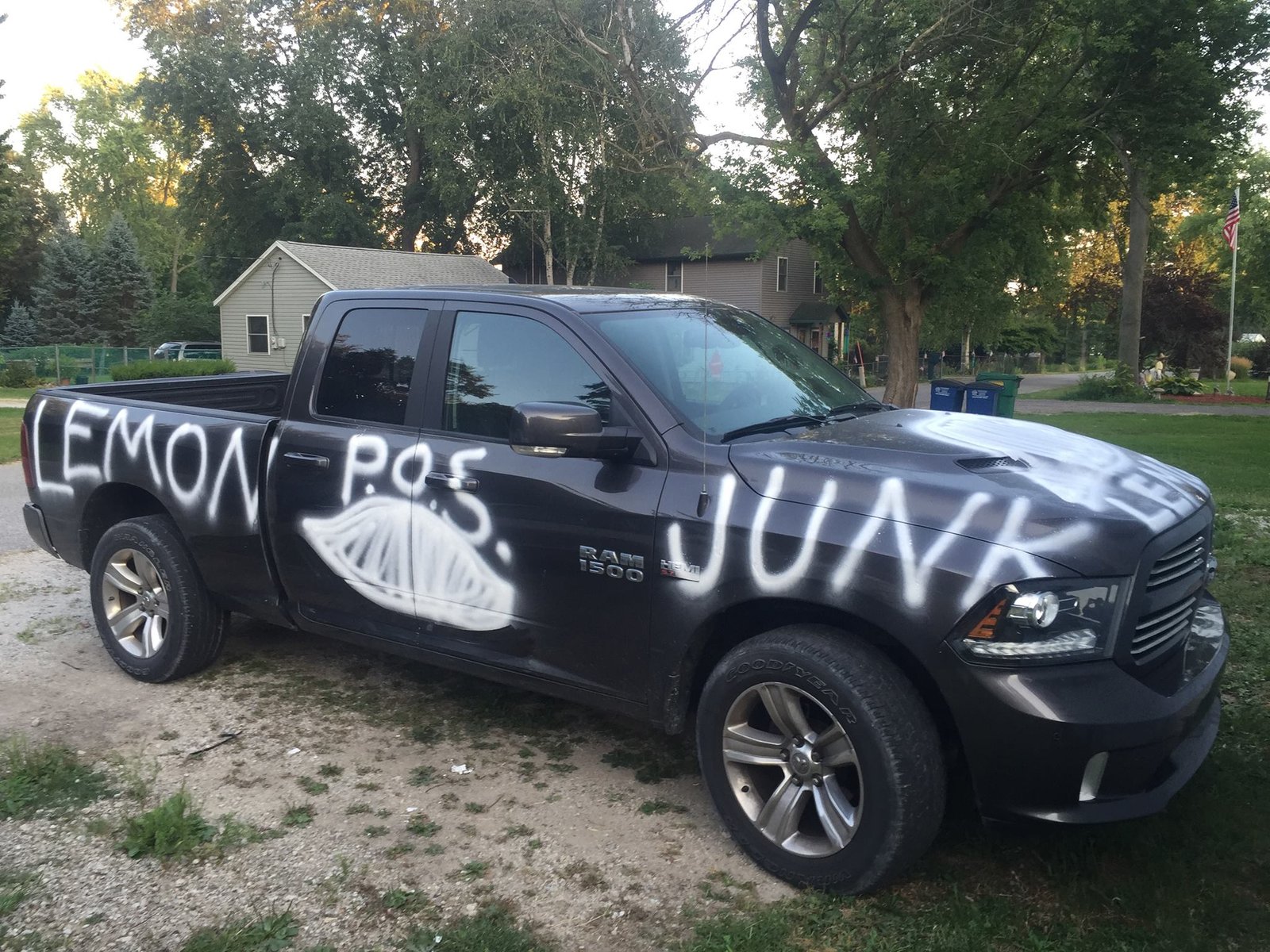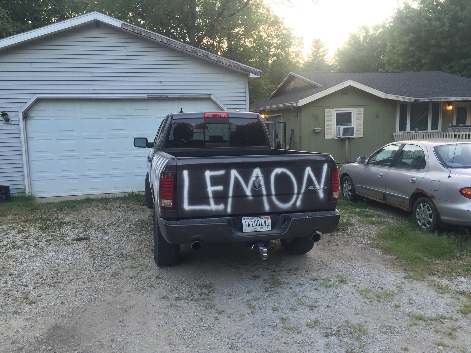 After fighting with three different dealerships and FCA refusing to do their part and stand behind replacing the second truck (with 60,000 miles on it now), Brad had enough and took to social media, in a rather unique way. Brad took spray paint and wrote all over his truck. Using the words “Lemon,” “P.O.S” and “JUNK”, Brad posted pictures all over Facebook hoping to catch FCA’s attention. We’re hoping that is washable paint. If not, it might be hard convincing FCA to take back a truck that is otherwise ruined now.