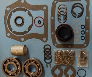 These kits include all bearings, seals, and gaskets for a full A833 rebuild including main bearings, tail shaft bushing, countershaft rollers/spacers/thrust washers, input rollers, snap rings, and all appropriate gaskets & seals, including speedometer adapter O-ring and seal.