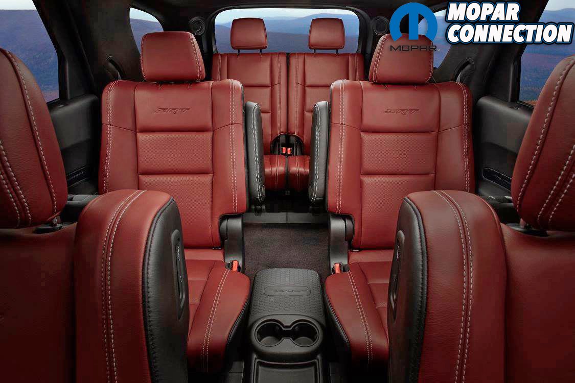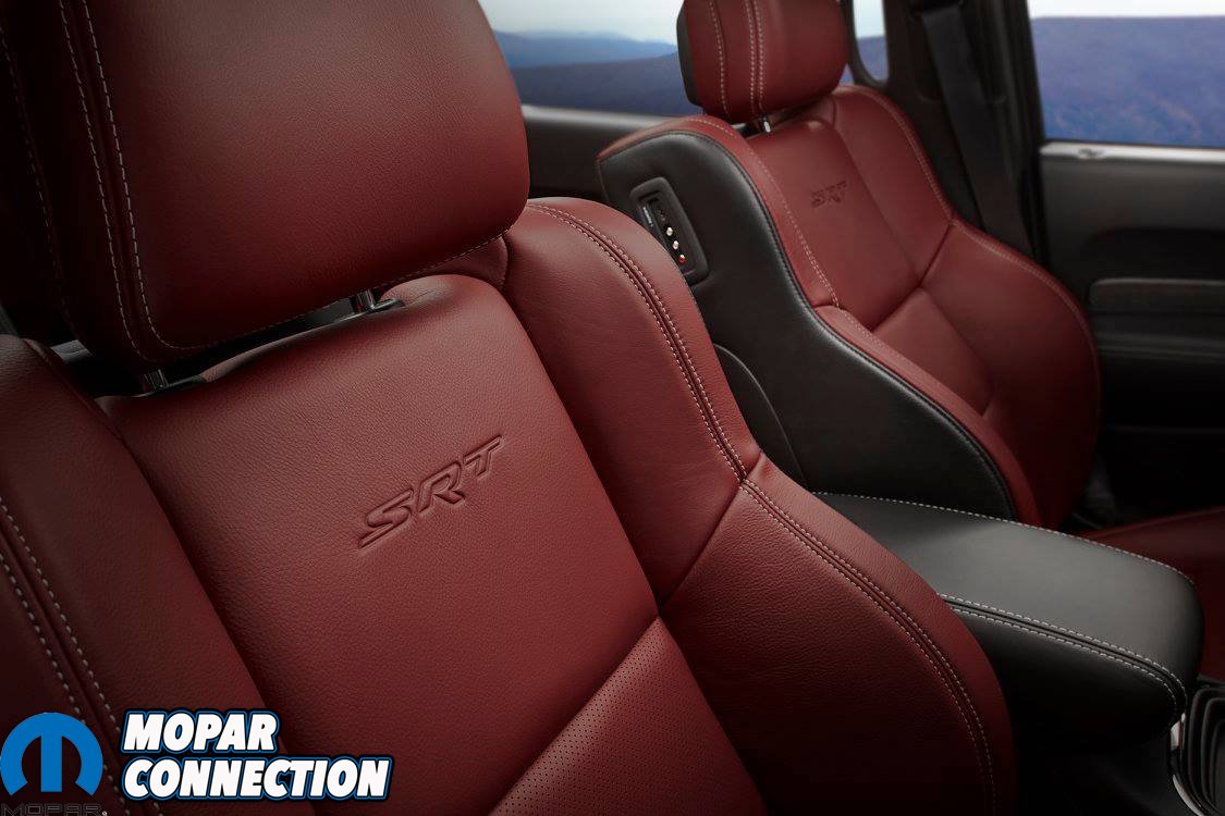 At the rear, a new SRT rear body-color lower fascia with Gloss Black accent surrounds the 4-inch dual round exhaust tips finished in Nickel Chrome. Sorry WK1 SRT Jeep fanatics, this one won’t feature center exit exhaust either. The 2018 Dodge Durango SRT is available in 11 exterior colors; including Dark Black Clear Coat, Billet Clear Coat, Granite Clear Coat, Bruiser Grey Clear Coat, Blu by Yu Pearl Coat, Ocean Blue Pearl Coat, Octane Red Pearl Coat, Redline Pearl Coat, Sangria Metallica Clear Coat, White Knuckle Clear Coat and Vice White.