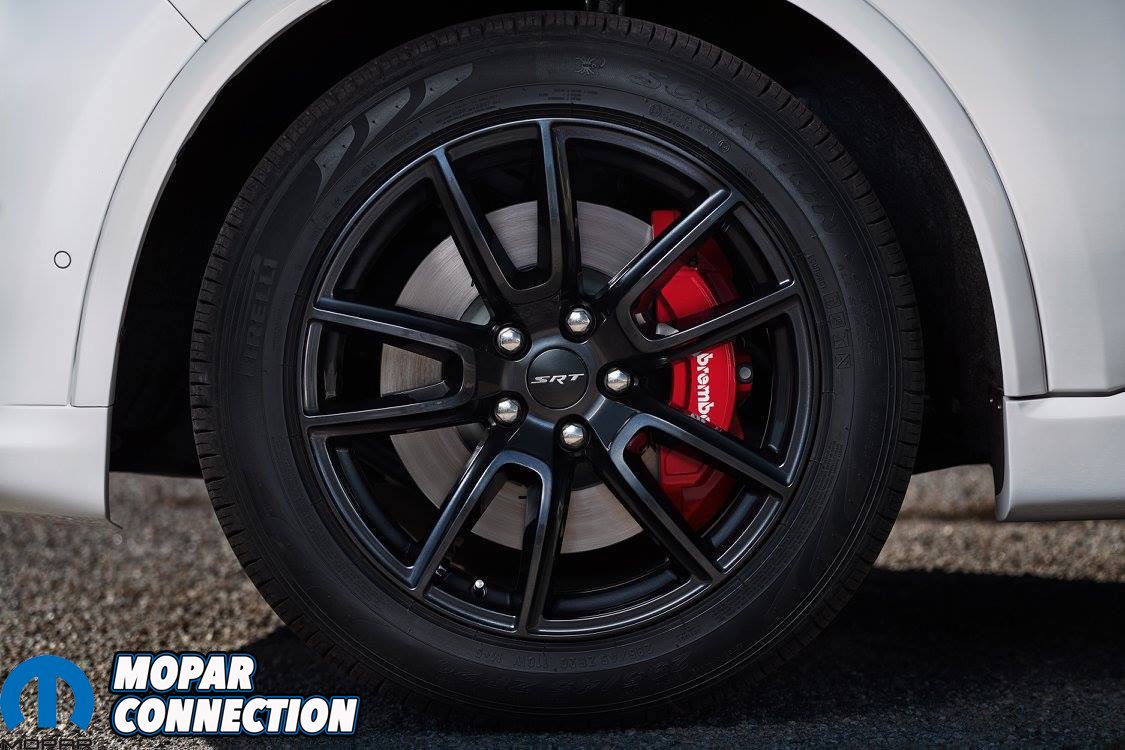 The 2018 Dodge Durango SRT delivers excellent braking performance thanks to massive Brembo high-performance six-piston (front) and four-piston (rear) calipers coupled with vented rotors at all four corners measuring 15 inches (front-slotted) and 13.8 inches (rear). Standard five-spoke 20-inch “Goliath” wheels with a new “Black Noise” finish mounted on Pirelli 295/45ZR20 Scorpion Verde all-season tires or available Pirelli P Zero three-season tires complete the mix. Also available are 20-inch forged aluminum wheels that feature a new split five-spoke design also come in the “Black Noise” finish.