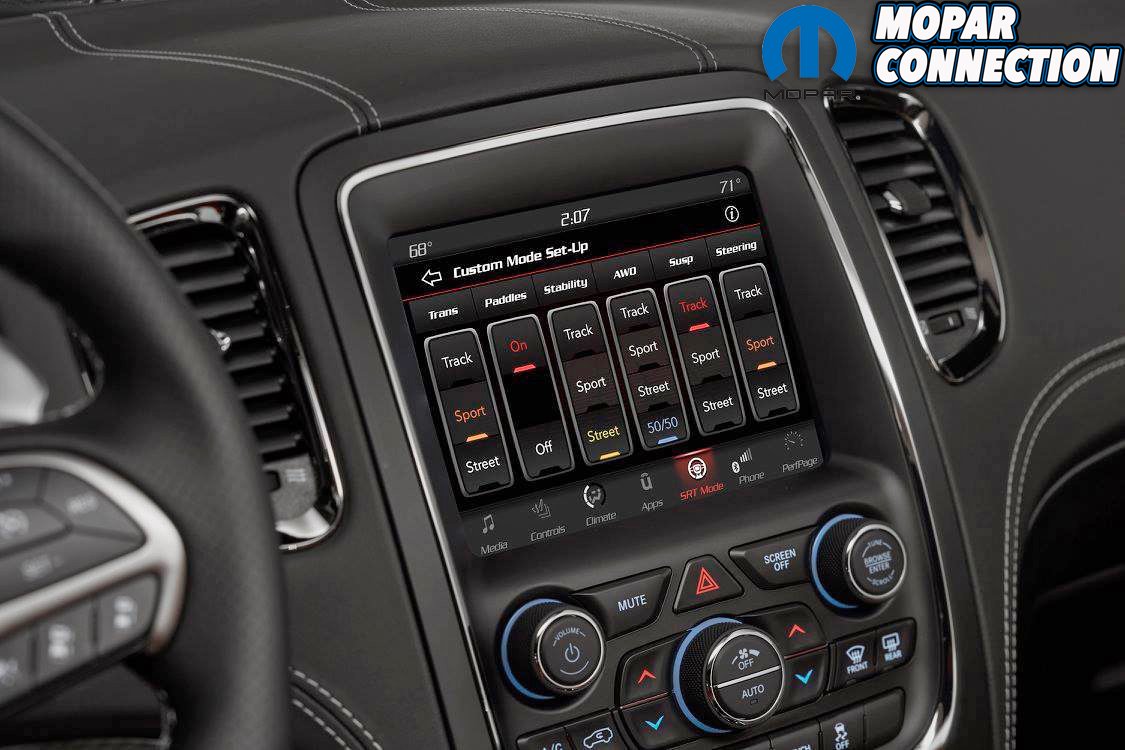 The Dodge Durango SRT rides on specially tuned Bilstein adaptive damping suspension components and includes 3 percent stiffer front springs, 16 percent stiffer rear springs and an 18 percent stiffer rear sway bar to provide Durango SRT drivers with the outstanding high-speed cornering capabilities that you have come to expect from a SRT product. The Durango SRT also features the SRT seven-mode drive system, which provides the driver the ability to precisely adjust drive settings to maximize performance or comfort. Suspension, torque distribution, shift points, stability control and engine mapping are all controlled through this system.