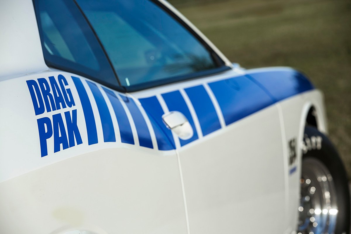 Each engine package totes its own unique graphic identification package; the supercharged 354 shows a Mopar Blue stripe and a “354 Supercharged” graphic insignia, as the naturally aspirated 426 Drag Pak wields a horizontal black stripe with a 426 Hemi engine graphics.