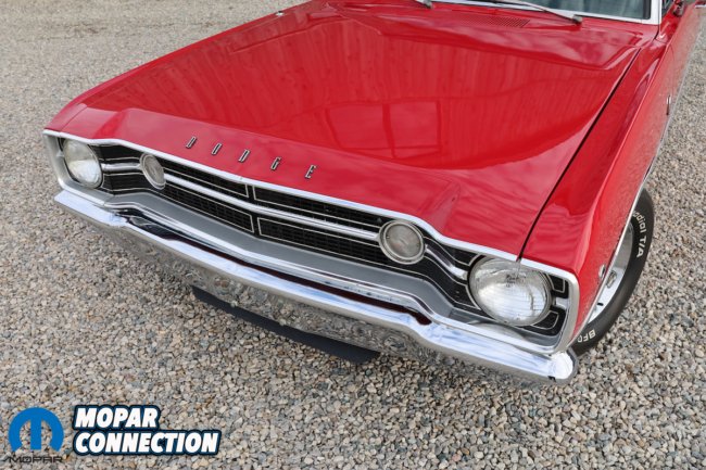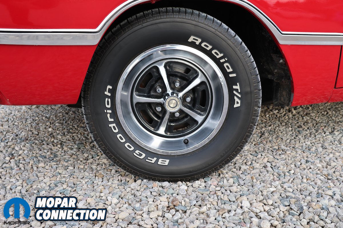 Completing the package, the car rides on classic Magnum 500s. wheels wrapped in B.F. Goodrich 245/60R14 tires, giving it both the stance and the road feel worthy of a well‑sorted Mopar.