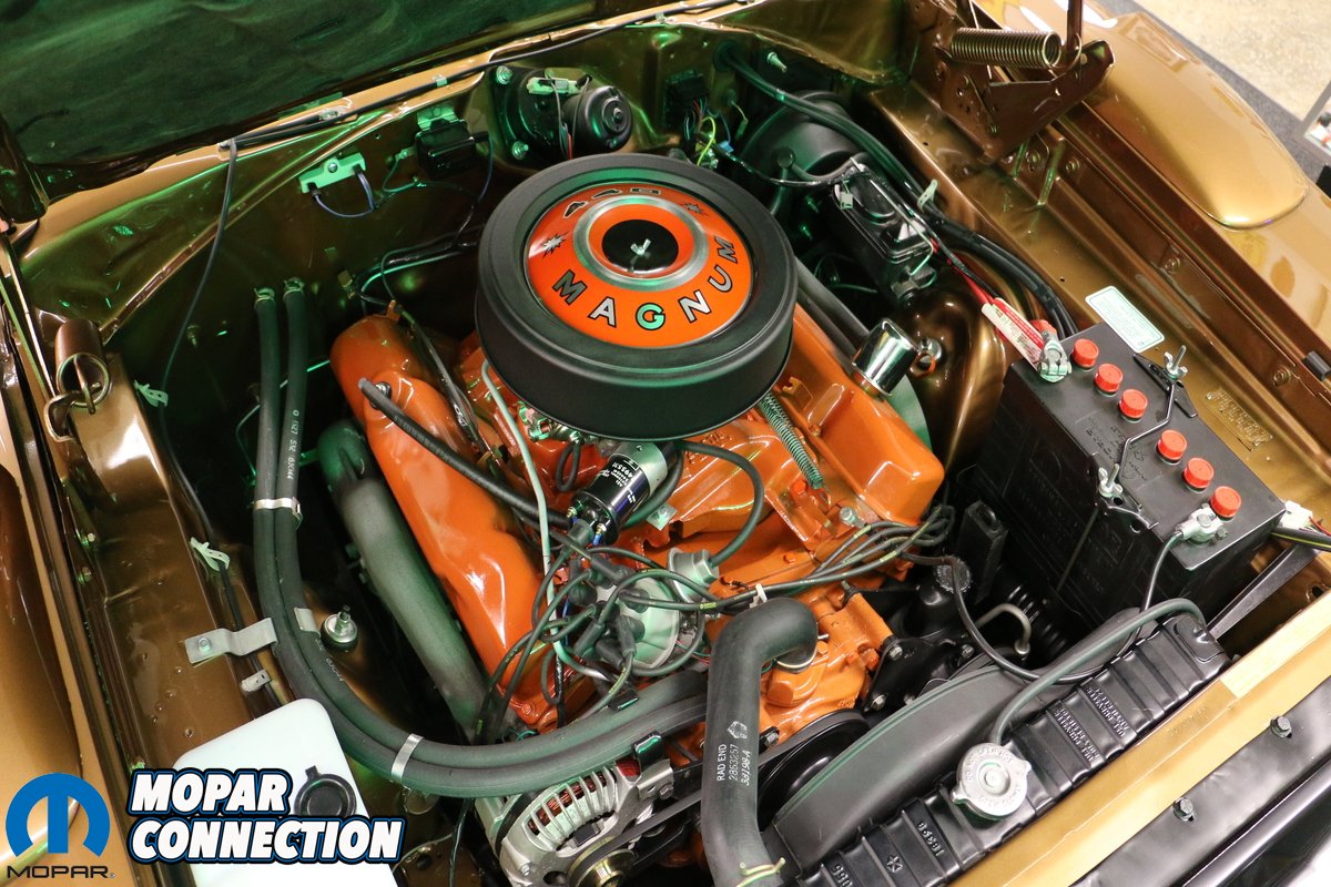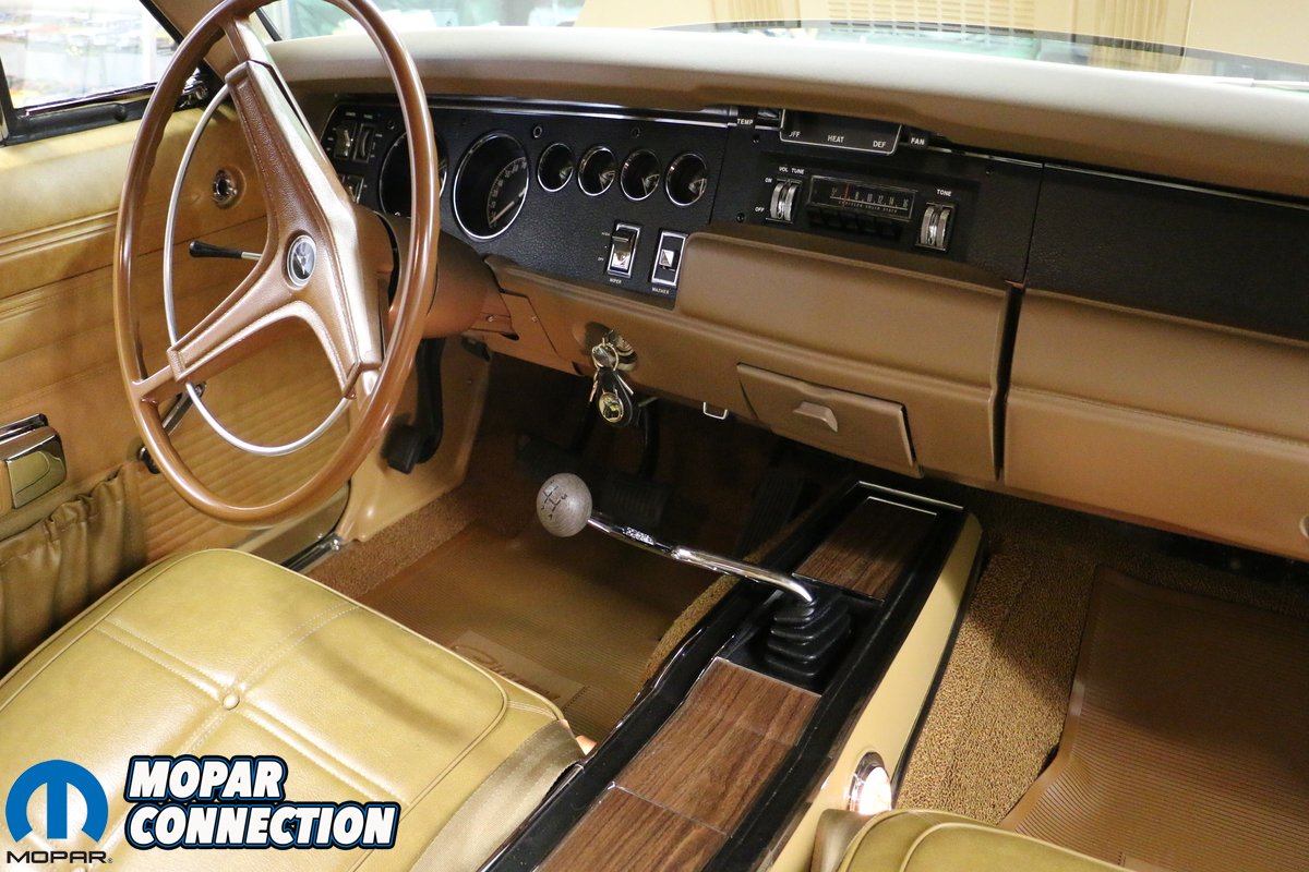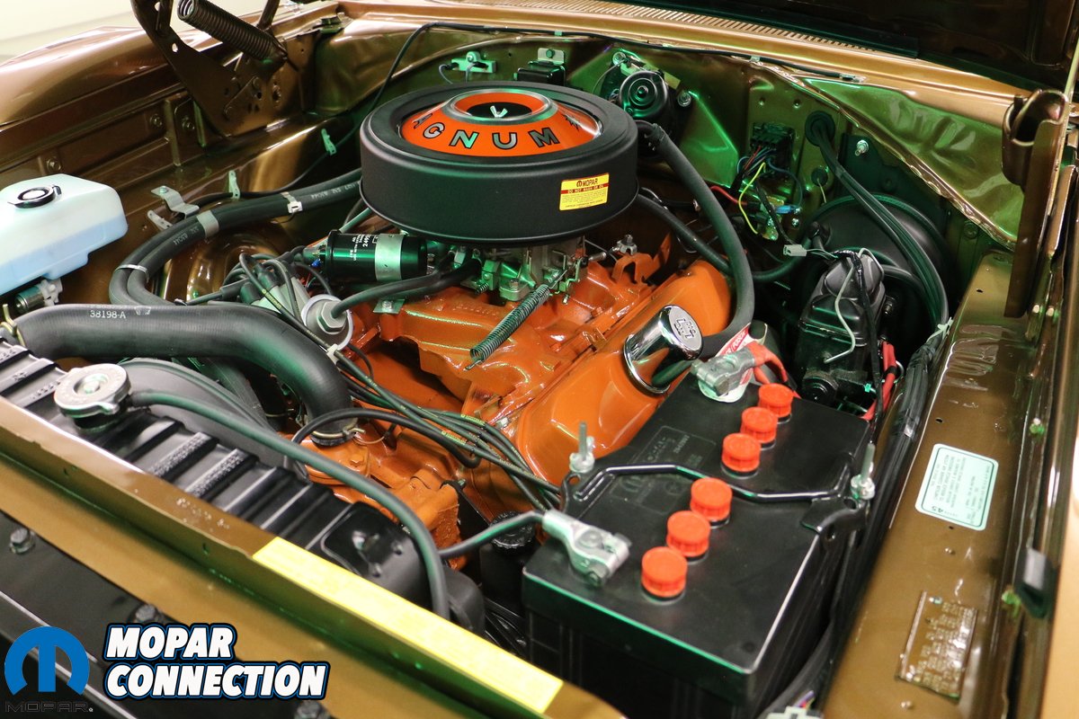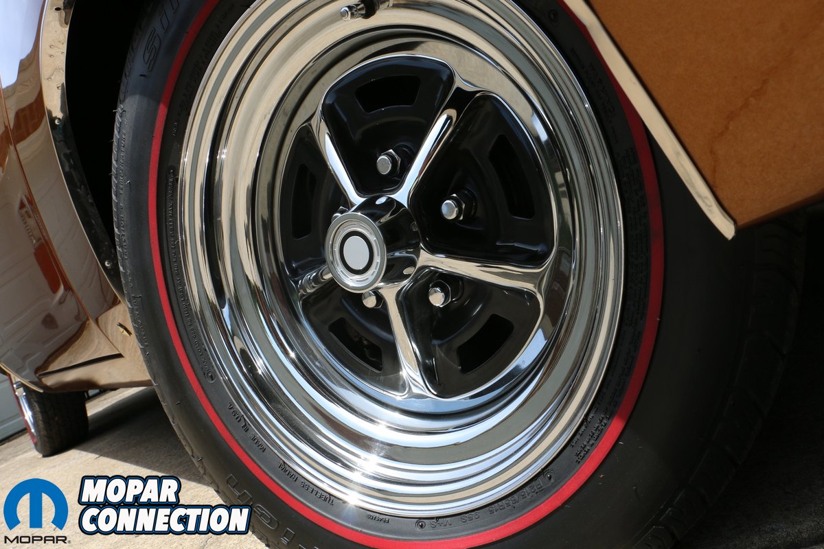 Once the body and paint were completed, a brand new Legendary interior from Classic Industries was installed. Evans Wiring supplied the wiring and many of the smaller items were sourced from Classic Industries and PG Classics. Ward’s Classic Car Radio Repair rebuilt the factory radio and S&M Electro-Tech, Inc. supplied the dash speaker. Under the hood, a date code correct 440 was installed. Backing the engine is a date code correct 4-speed manual transmission and Dana 60 sourced from Tony’s Mopar Parts; both freshly rebuilt. To help the Daytona stop better, a factory power disc brake setup was installed on the front. Richard tells us all of the factory drum brake components are put away so the car can be returned to original if that is ever desired. Since the original tires and wheels were missing, Richard opted for 15” Magnum 500s wrapped in redline BF Goodrich radial tires to improve ride quality. Other parts were sourced from Glen-Ray Radiators, National Moparts, Performance Car Graphics, Mr. Moparts, David Koops and Herb’s Parts.