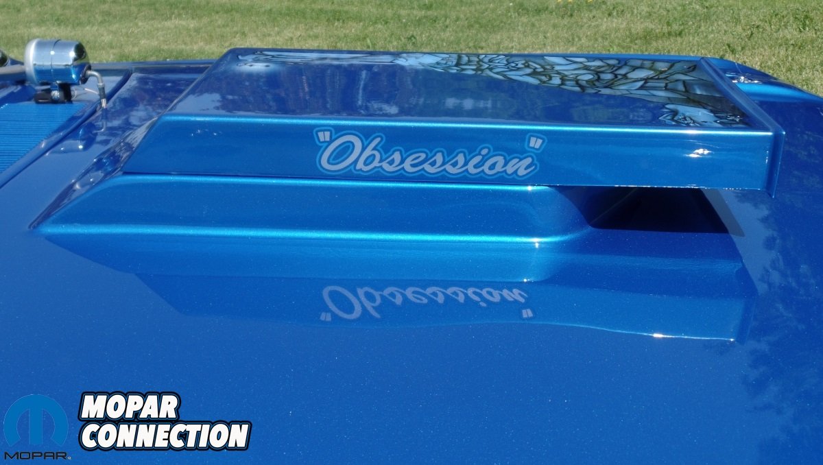 The bumpers were painted to match the car and the white bumblebee stripe was painted on. In September 2017, my wife had the engine compartment pin striped by “Brian The Brush” for my birthday. Just this past May, we had “Brian The Brush” paint a mural on the hood scoop with the car’s name, “Obsession” on the sides. Don Hooker from Don’s Brush Art & Vinyl Effects did the lettering on the back bumper several years ago.”