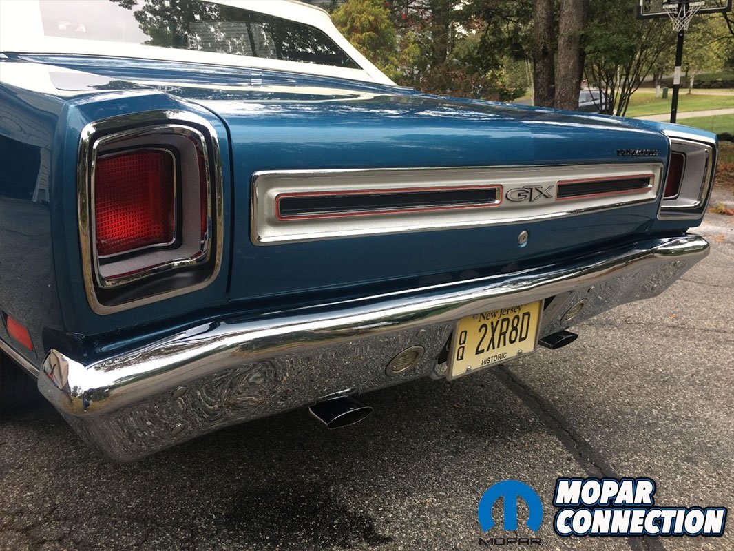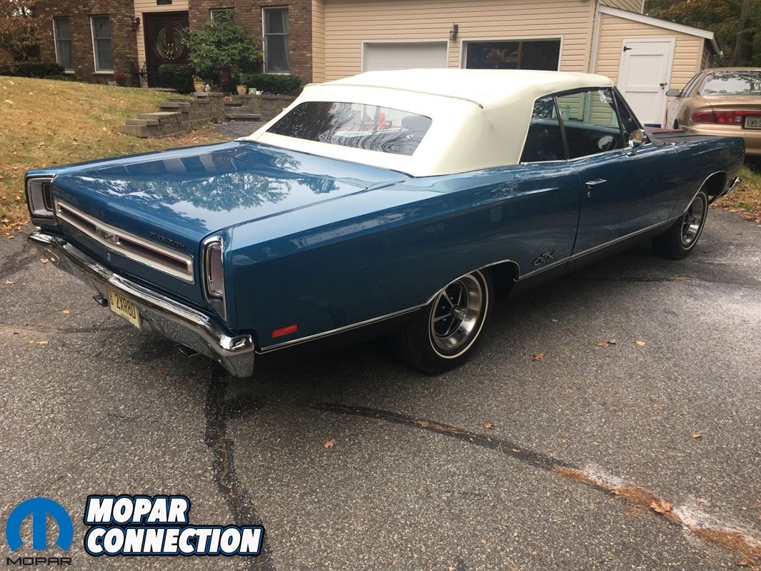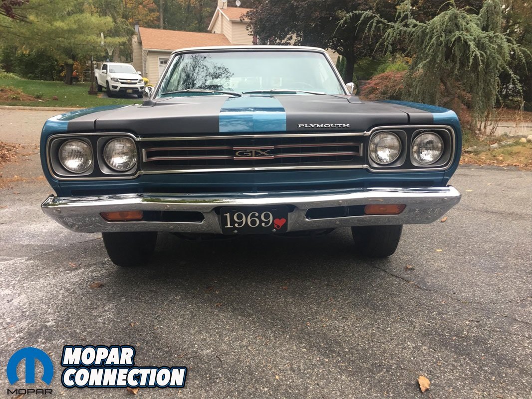 After having a bite to eat, Brian decided to make an offer on the car and after some negotiating, he and the owner agreed to a price and the deal was done. The next month, Passport Transport delivered the GTX to Brian’s house in Northern New Jersey. Once he got the car home, Brian went to work on a list of items that were needed for the car such as the hard to find original blue interior pieces.