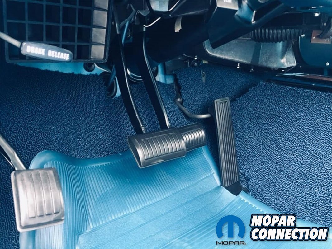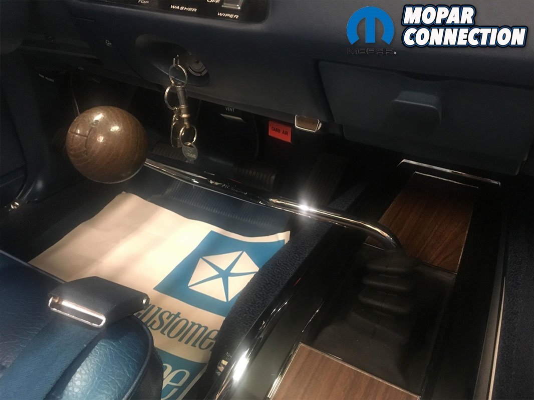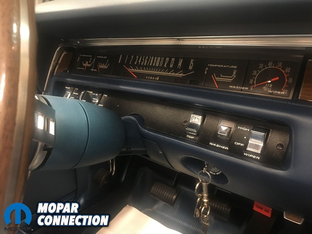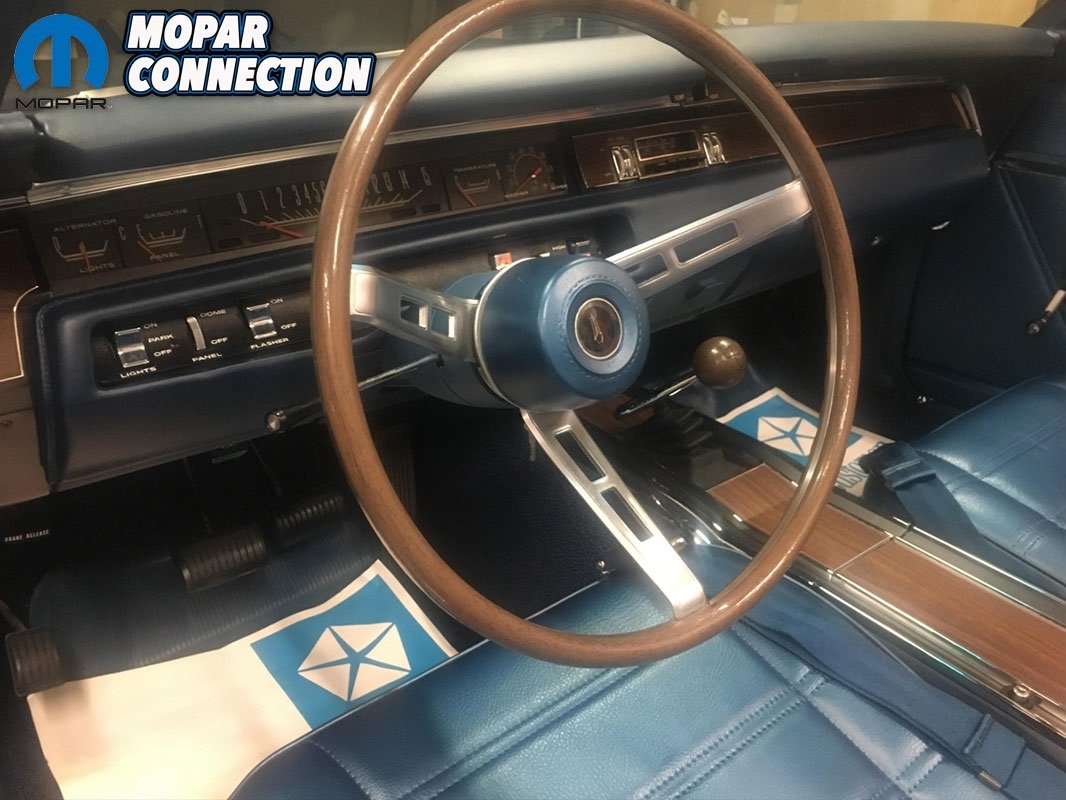 He tells us, “The upper dash pad was starting to crack on the outside edges by the A pillar trim. Knowing that my old ‘69 Charger had an original blue upper dash pad that had been dyed black, I contacted the current owner and arranged a trade for a new upper dash pad plus some cash or extra Charger parts that I had in order to secure an original blue crack free dash pad. Frank, the new owner of my old Charger agreed and I swapped out the dash pad for him in my old car. I was also lucky enough to have found another complete set of upper and lower dash pad pieces through Wildcat Auto Salvage to have just as a spare should something happen to mine as original blue interior parts are extremely hard to find!”
