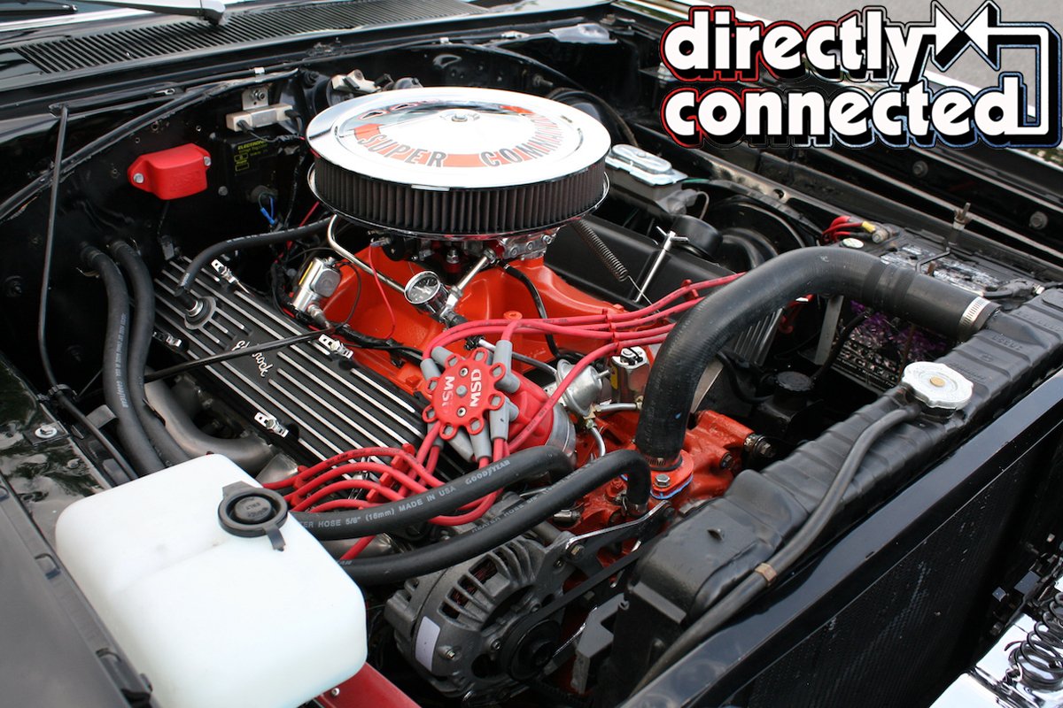 To help the mighty big block get the fuel it desires, Mark installed two Carter electric fuel pumps and then cut open the fuel tank and added baffles inside. Everything is controlled by a MSD distributor and ignition box. The engine is cooled through an OEM radiator fitted with dual electric fans. Exhaust exits through a set of Hooker Super Comp ceramic-coated long tube headers and dual 2.5-inch pipes via an X-pipe and Flowmaster 50 series mufflers. The monster 493ci big block is then mated to a TorqueFlite 727 transmission that’s been fitted with a 3400 rpm converter and a bolt-in rear sprag.