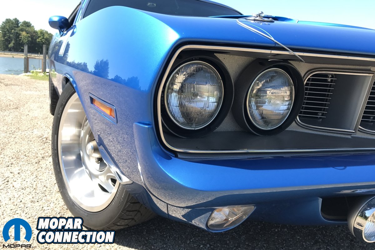 Once he had the fenders, Shane got back to work finishing the body and paint. He spent lots of long weekends and nights of bodywork and panel alignment, followed by endless hours of block sanding until it was finally ready for the paint process. Shane tells us lots of effort was put into all the small hard to get details. In November of 2016, he finally started the paint process using Sikkens 1971 B5 Blue base/clear paint. On May 8th, 2017, the ‘Cuda was finally painted, cut and buffed and ready to come home for reassembly. Thankfully since Shane already had everything laid out and organized for the assembly, the ‘Cuda was assembled, got a front end alignment and was ready for the first car show just a month later! In July, the ‘Cuda went to the GoodGuys show in Columbus Ohio and won the Homebuilt Heaven award! Shane says besides the added rear wing and billboard decals, the exterior is finished exactly as it came from the factory.