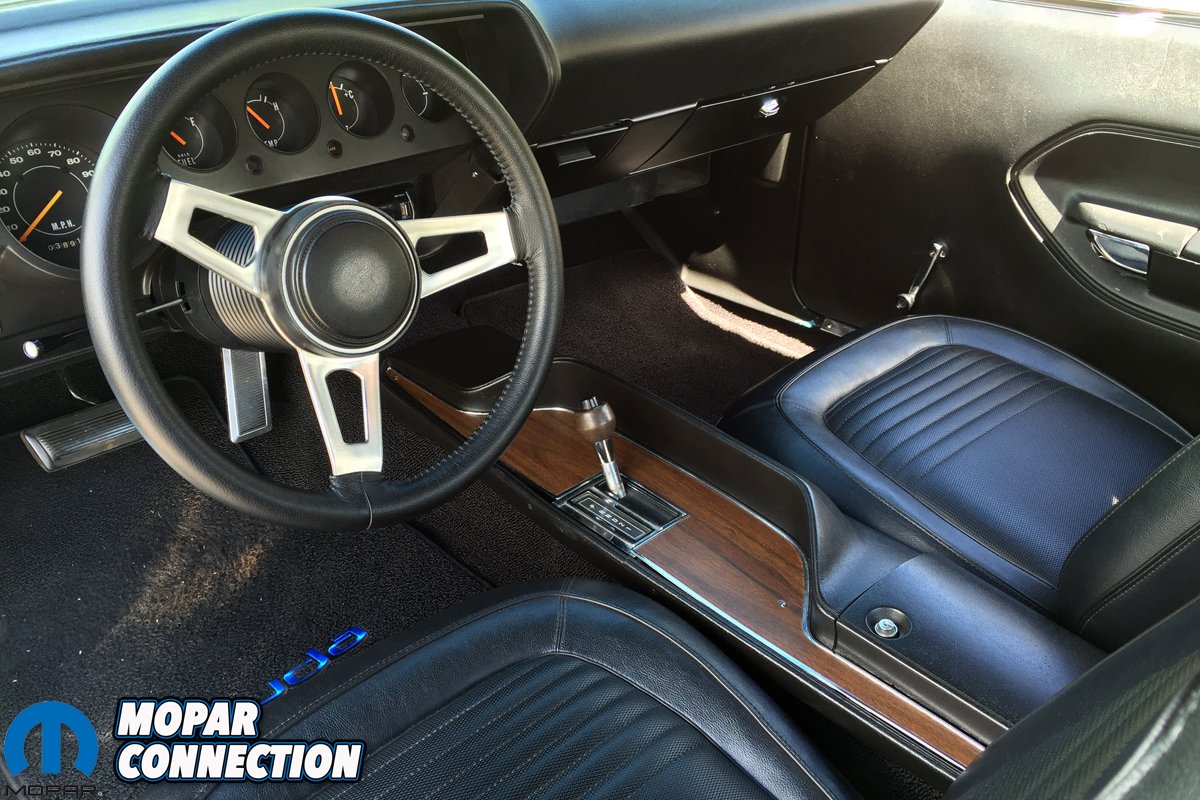 The car came from the factory equipped with power front disc brakes so Dan left those alone but replaced the 11-inch rotors with brand new pieces. Dan had a more aggressive pro-touring look in mind for the ‘Cuda, so off came the Rallye wheels and on went a set of US Mag wheels, 18×8 and 18×9.5 front and back respectively, wrapped in 245/45/18 and 275/40/18 Hankook Ventus V12 tires. With the pro-touring theme, next was to improve the handling, so he upgraded everything to Hotchkis suspension components with 1.10-inch torsion bars, added a rear sway bar, and installed Fox shocks with adjustable fronts. The interior was fully restored by the previous owner as well, using Legendary products with the only changes being a Tuff wheel that Dan added.