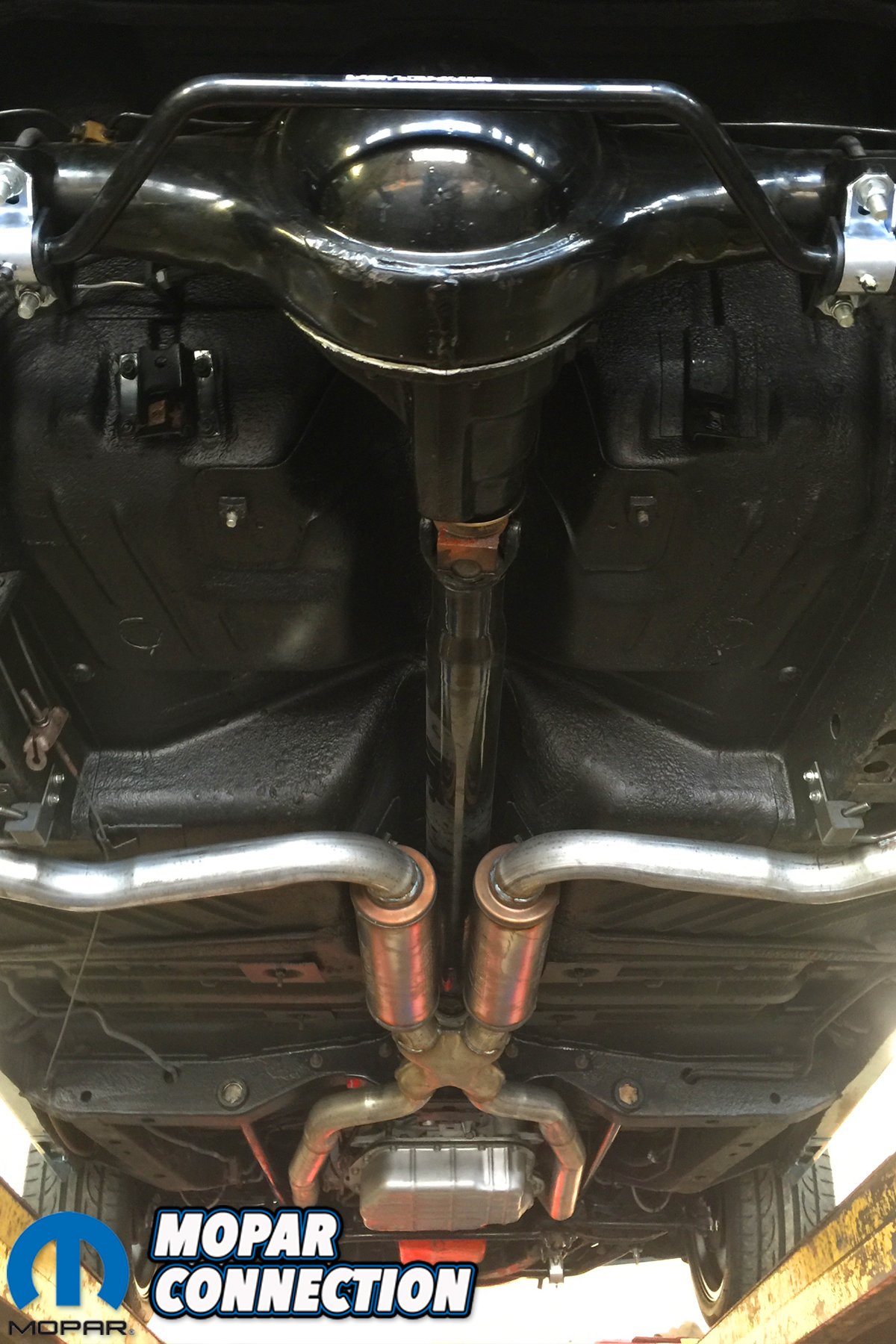 The original leaf springs were old and saggy so they were swapped out for new Hemi/440 springs with 1-inch overstock from ESPO Springs ‘N Things to fit those 30×12″ tires. For better handling and suspension, he upgraded to a Steer & Gear extra firm steering box, Bilstein front shocks with Sensatrac rear shocks, 1 3/8″ front sway bar, 1.03″ torsion bars, and sub-frame connectors to make the Charger more solid. With a pair of very impressive yet uniquely different Mopars beneath one roof, Dan’s house features one cool garage.