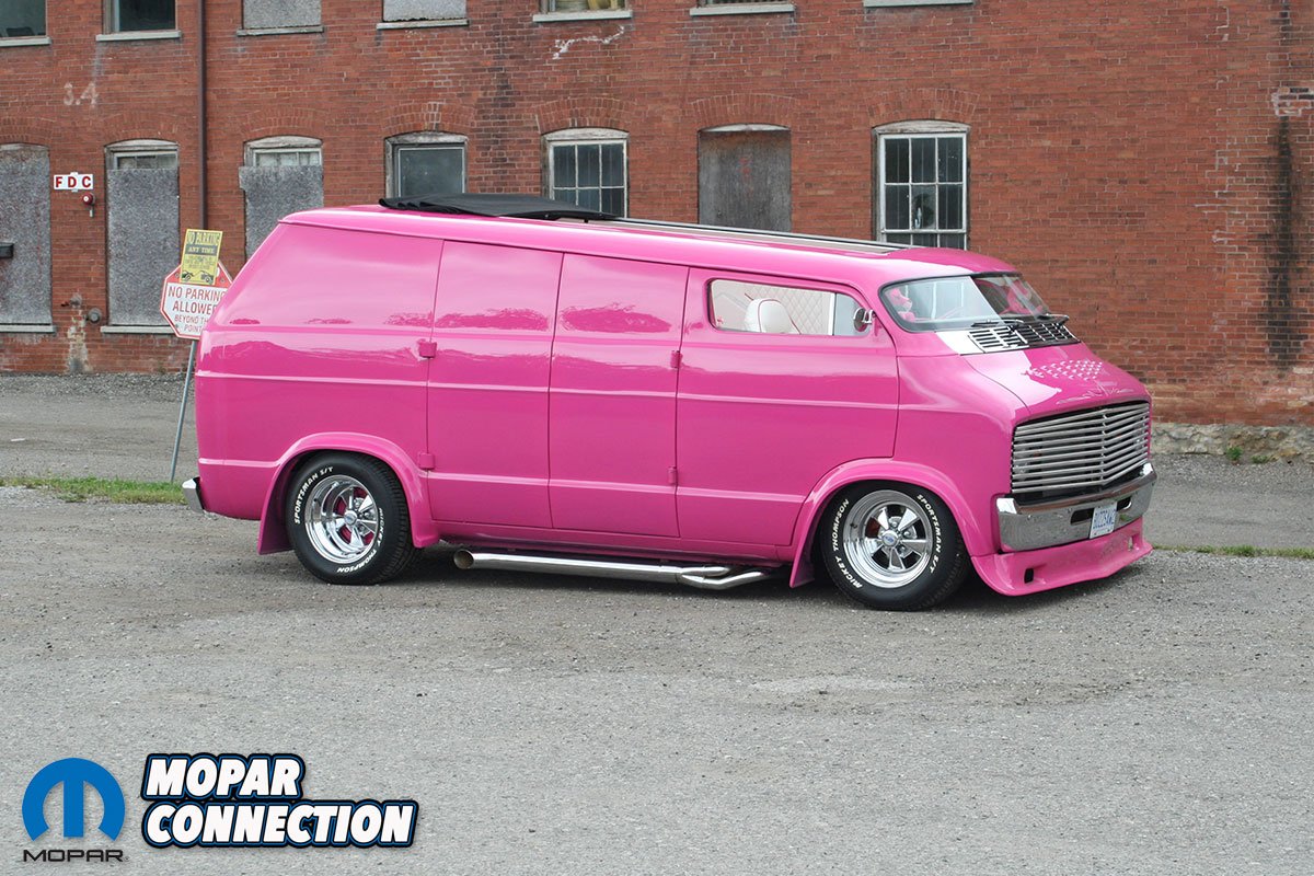 Ken McCarl bought his first van, a 1977 B-100, and customized it to the best of his abilities with a modest budget of $4,000. The van featured a pink exterior with a black vinyl roof, incorporating numerous styling cues characteristic of that era.