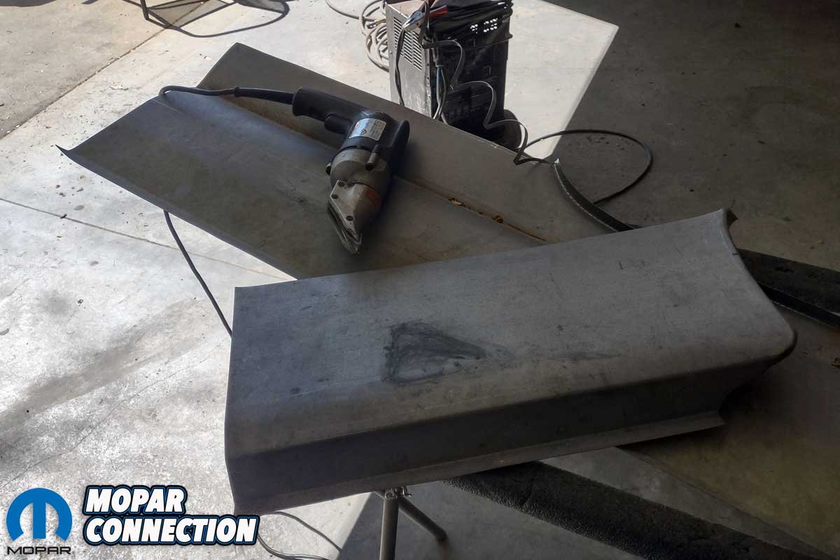 When Marsha arrived at Chamberlain’s shop, it was accompanied by a pair of roughly shaped aftermarket quarter panels. Because the Fury did not need full quarter skins, each panel would be sectioned for what would be required. After several measurements of Marsha’s quarter panels, Chamberlain marked and cut the aftermarket sheet metal.