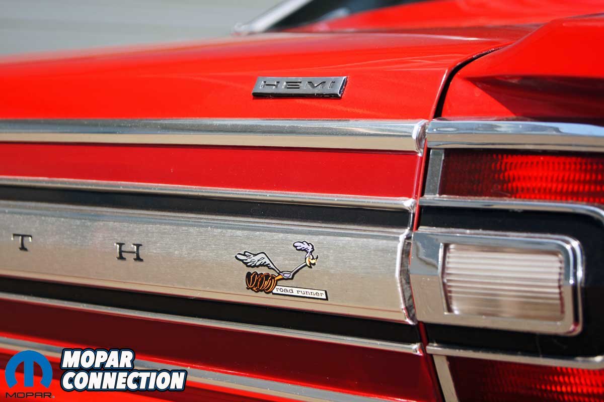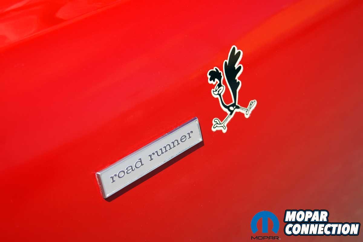 Above Left: While the Road Runner icon is easily recognized, the little Hemi emblem informs everyone that this ‘Runner is packing a little more. Above Center: The two non-functional air inlets provided two more locations for Plymouth to advertise what is under the hood. Above Right: Plymouth paid $50,000 to Warner Bros.-Seven Arts to use the Road Runner name and likeness from their Wile E. Coyote and the Road Runner cartoons.