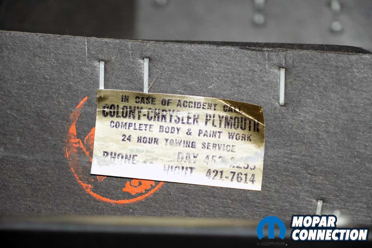 Now that the Road Runner is in my garage, I have already started a detailed car inventory. It has so many original parts that it is incredible, but it still needs work. I will work with magazine sponsors to update the Road Runner with specific date-correct components and search for NOS parts unavailable from the sponsors.