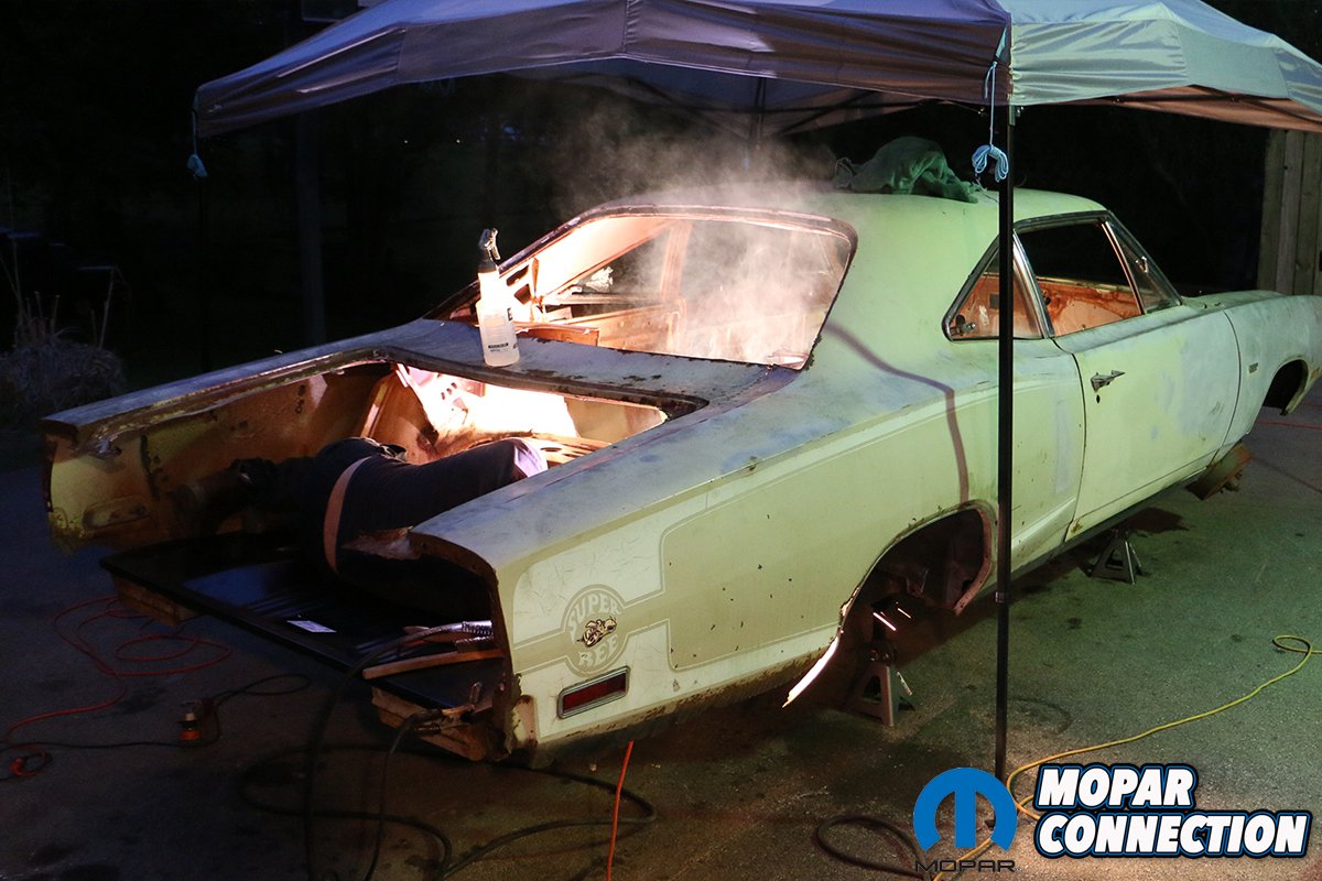 “I’ve taken to calling this car a ‘rust onion’ lately,” I grudgingly joked with Mopar Connection’s Technical Editor, Mike Wilkins. “With every layer I peel back, the more I find.” He laughed but knew all too well that the car would really require far more work that initially planned for. Mike was there when we first extracted the Super Bee from its rural Ohio carport, and even helped lower it off the trailer and into my backyard. “Car’s pretty rough,” he warned. “It’s gonna need a lot of work.” The original plan was just to get it running – it was pretty complete, after all – and drive it around like the goofballs on “Roadkill.” At least, that was the plan.
