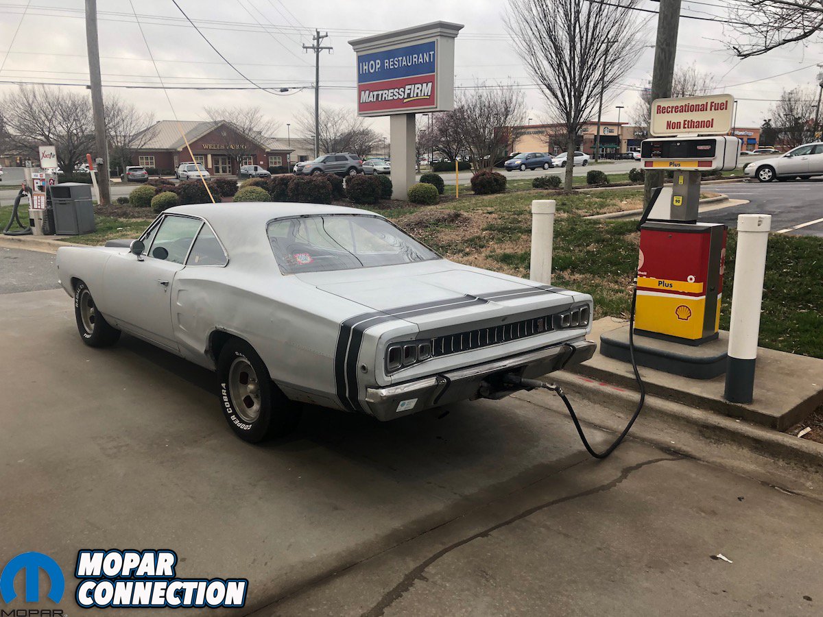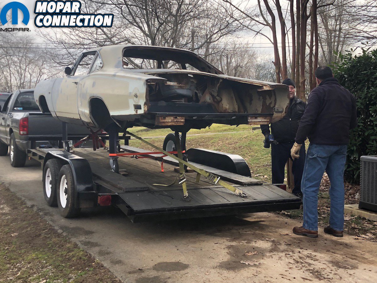 Temperatures were still in the high-30’s when we loaded ZomBEE on Mopar Connection’s Tech Editor Mike Wilkins’ trailer. Riding high on angle-iron struts and solid-rubber 6-inch casters, the Coronet was a ungainly sight, particularly as its grille-less snout filled our truck’s rearview mirror.