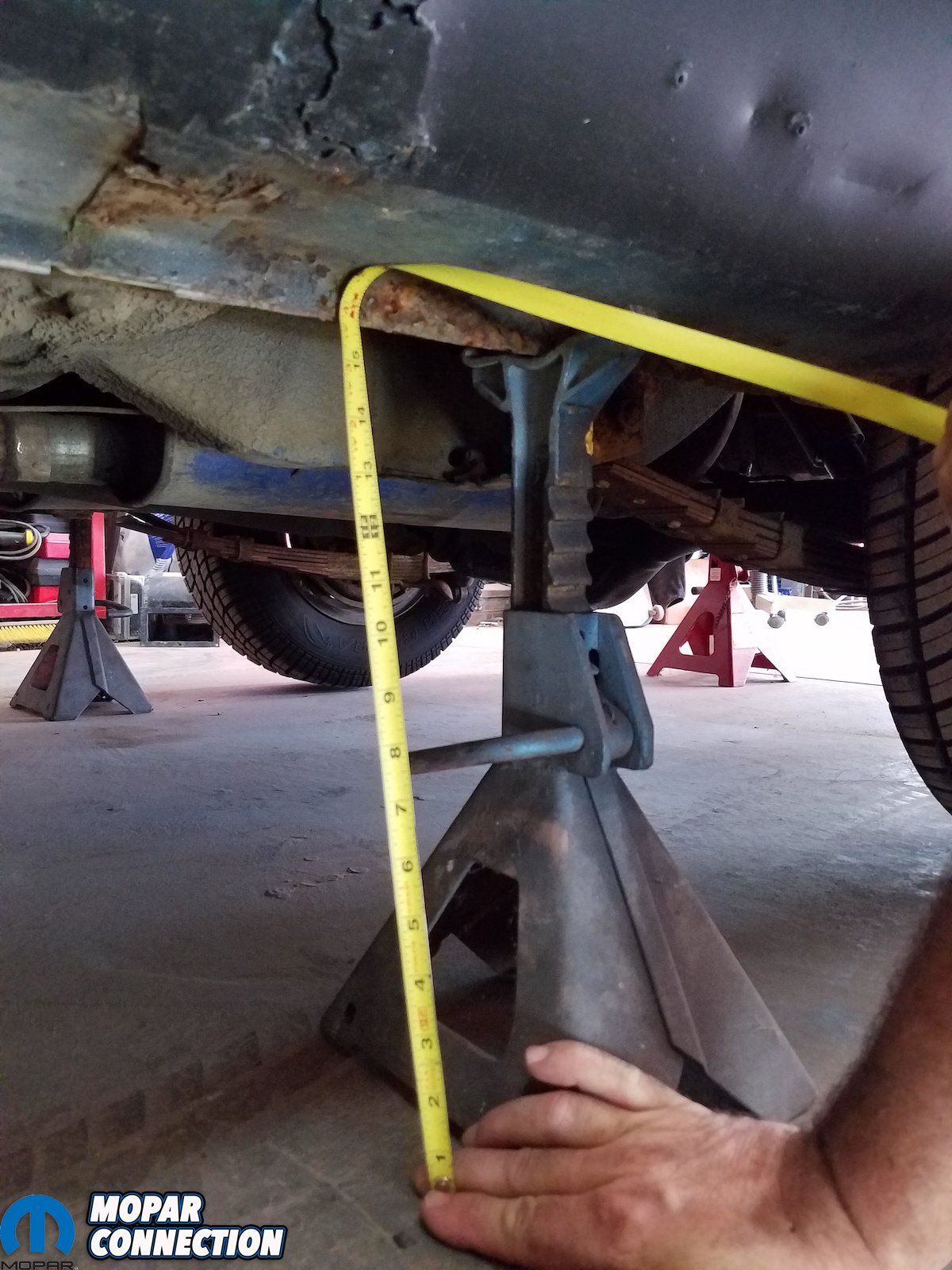 Above: While checking level of the car front to back and side to side, our Coronet was surprisingly straight. If the car has never been hit this will work out. If it’s been hit, these numbers won’t line up and you’re going to need to go to a frame rack