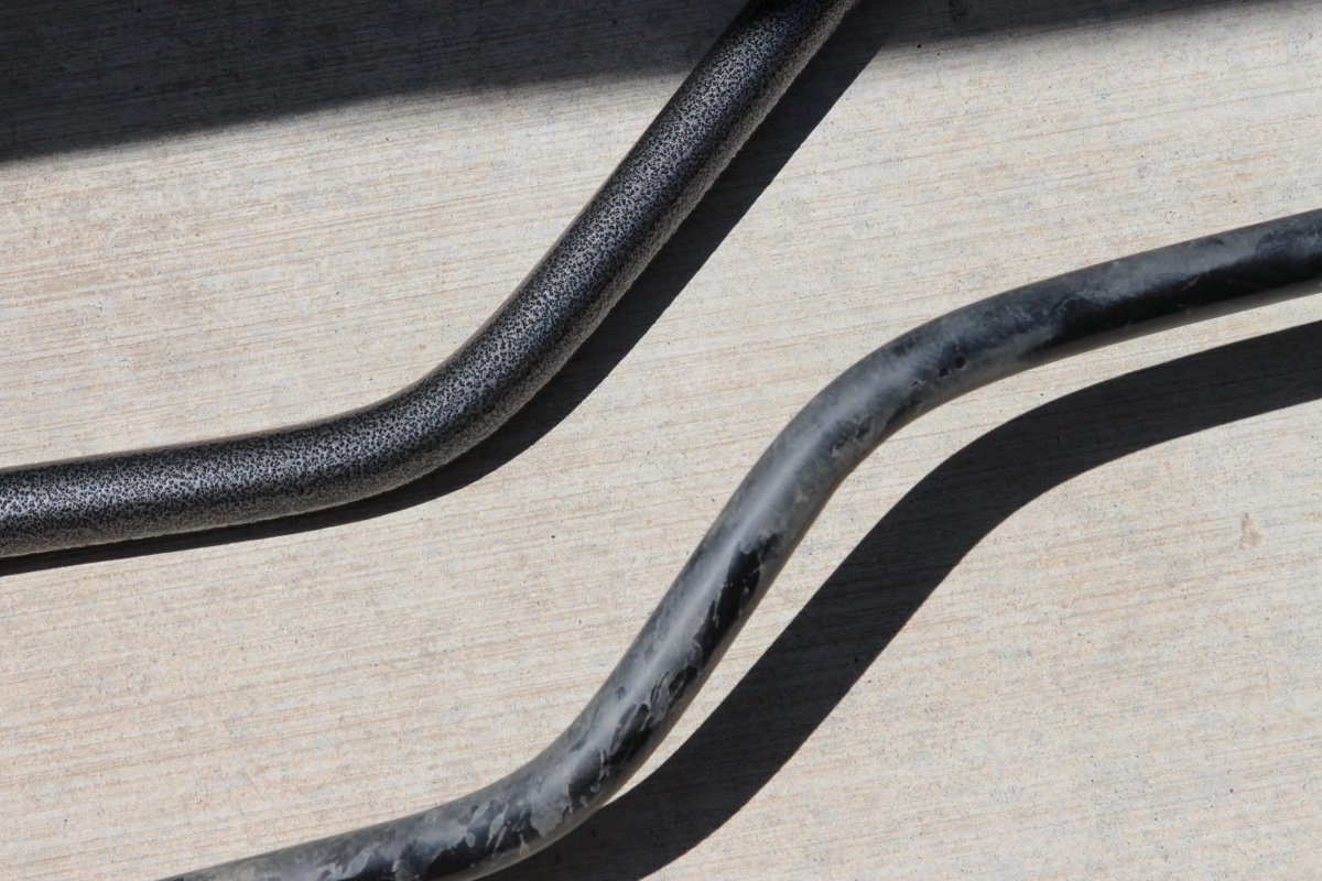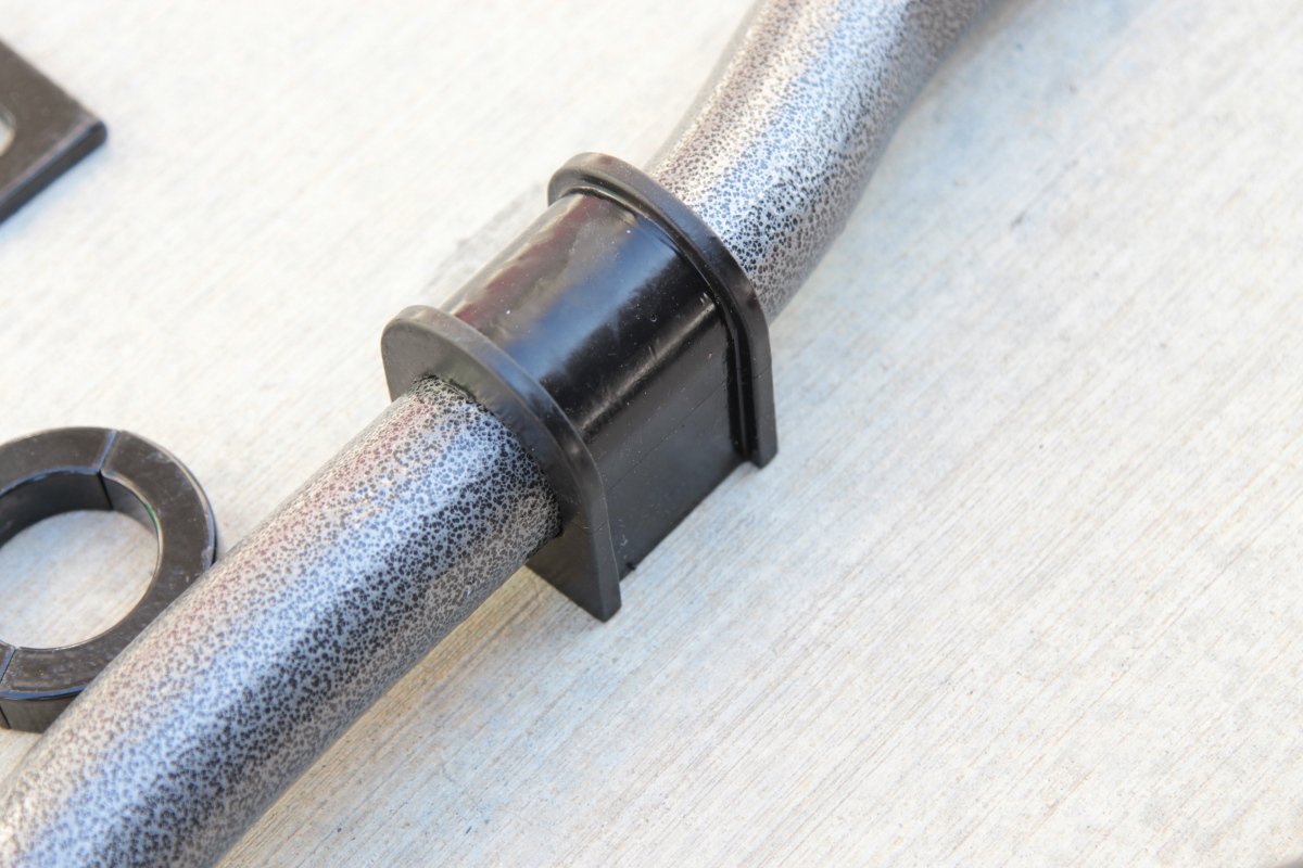 Above: The Hellwig bar has the standard hammertone powder coating which serves two purposes: it protects the bar from the elements, and the ‘pockets’ in the finish help trap the bushing lube so it doesn’t all squish out when the clamps are tightened.