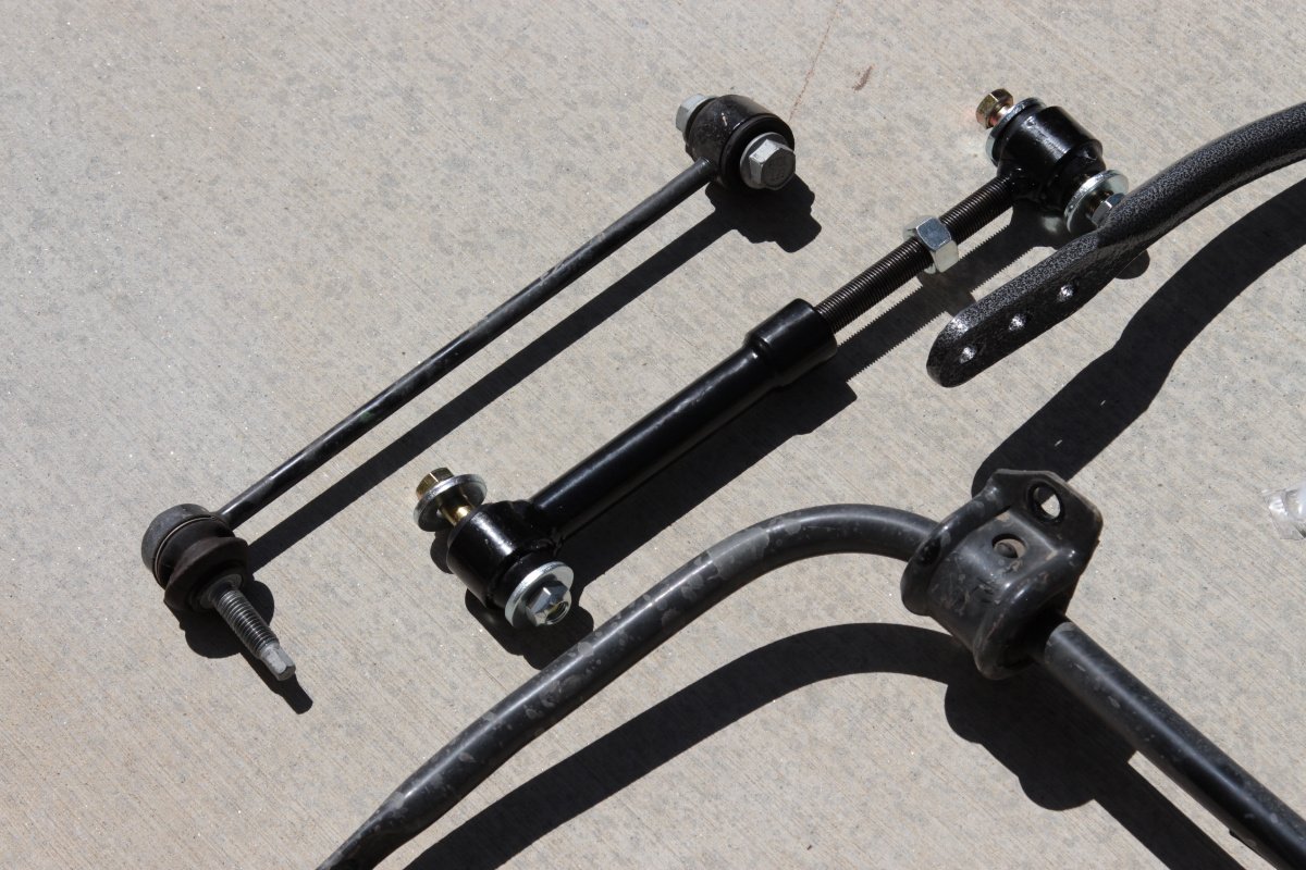 Above left: Note how the center of the bar drops down slightly. Above right: The OE end link stays, no need to remove the whole link.