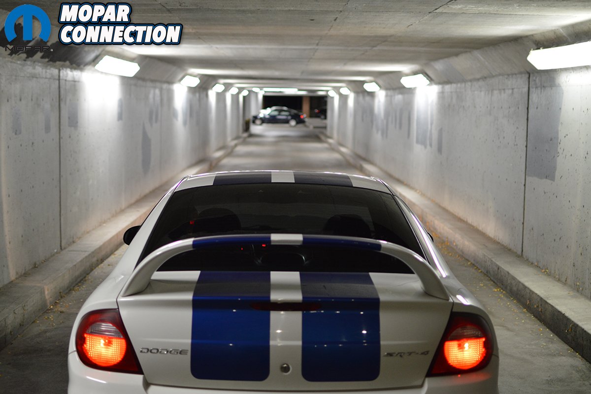 Matt’s Commemorative Edition SRT-4 is number #37 out of the 200. He’s since investigated and found out it was 1 of 56 produced with the power sunroof, Kicker subwoofer system and side air bag seats. Most SRT-4s came with the Viper inspired racing seats so finding one with the Neon R/T style side air bag seats is pretty tough. Matt says he’s the 5th owner of this car which had him a little concerned at the time. Apparently a previous owner had dumped it into a ditch and surprisingly just the hood was damaged so that was repaired and repainted. Matt ended up placing the car in a storage unit until May and only drove it around on the weekends. The car currently sits at 49,882 miles and won’t see any more miles tacked on until March or April of next year. It’s pretty heavily modified which Matt loves.
