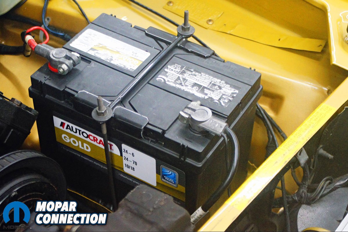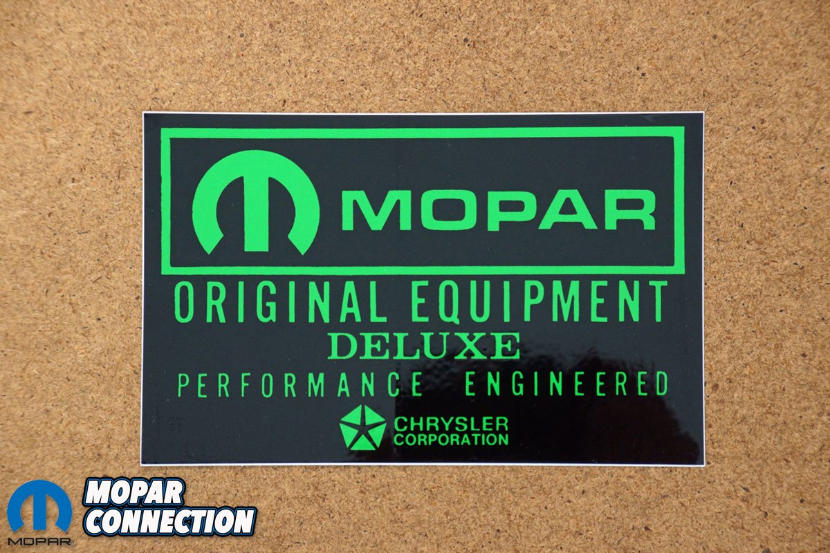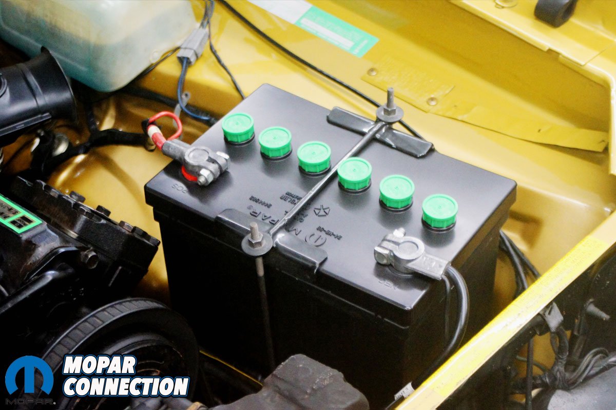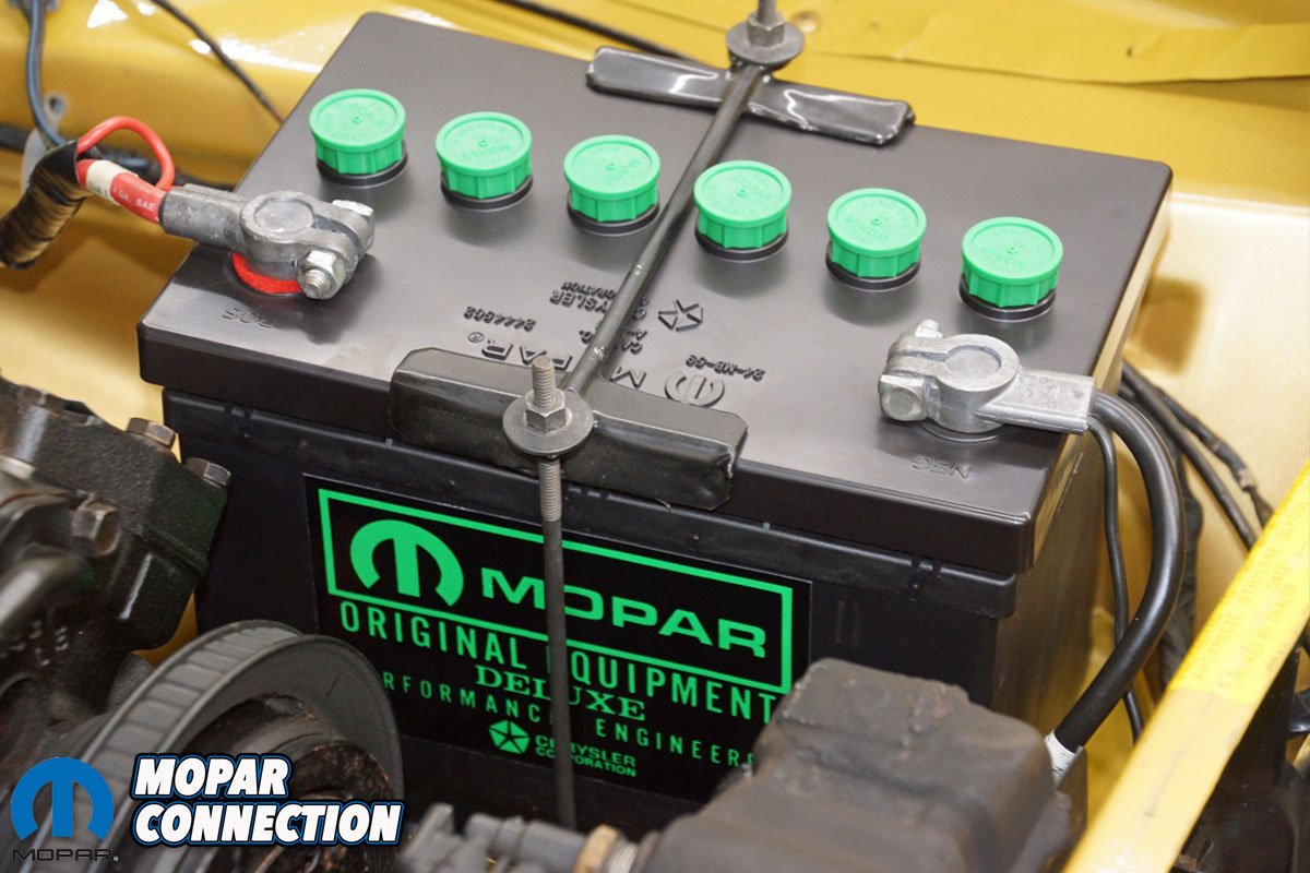 While pleased with the topper, the battery looked bare. Luckily, we found an “Original Equipment” reproduction sticker from Dodge Connection. After installing the decal, the battery’s appearance was perfect.