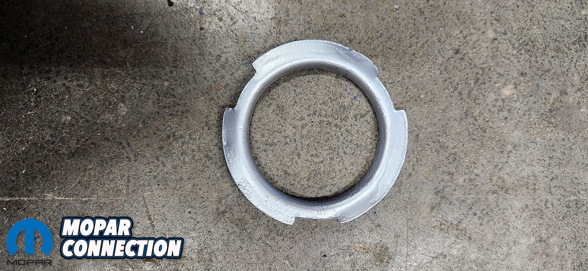 Since our Challenger now has a 440 Magnum under the hood, we upgraded to a 3/8″ line which meant we went for the 3/8″ fuel sending unit. The sending unit was very good quality versus some of the other reproductions we’ve seen. We have always heard that the factory lock rings for the sending unit are thicker and fit better than the reproduction ones so while we used the new sending unit and gasket, we cleaned up and reused our factory lock ring for a tighter fit. We did try the reproduction one briefly and wasn’t a huge fan of the fit.