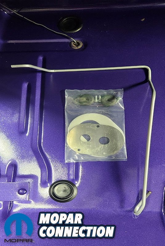 Once we had the grommet in, we installed the new fuel sending unit. Our Challenger was originally equipped with a 383 Magnum from the factory so it was factory equipped with a 5/16 fuel line. For those that don’t know, typically 440 (4-bbl and 6-bbl) and 426 Hemi-powered cars received a 3/8″ fuel line with a ¼” return line and the 383 and everything down received a 5/16″ line.