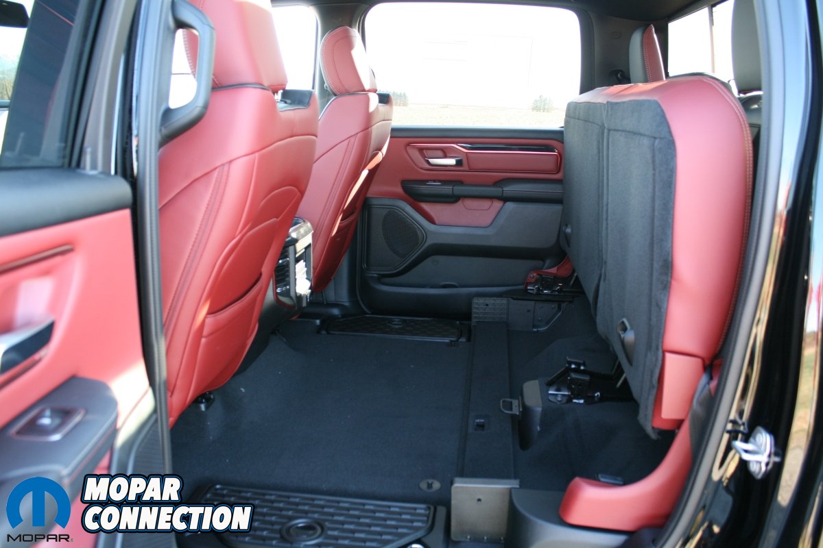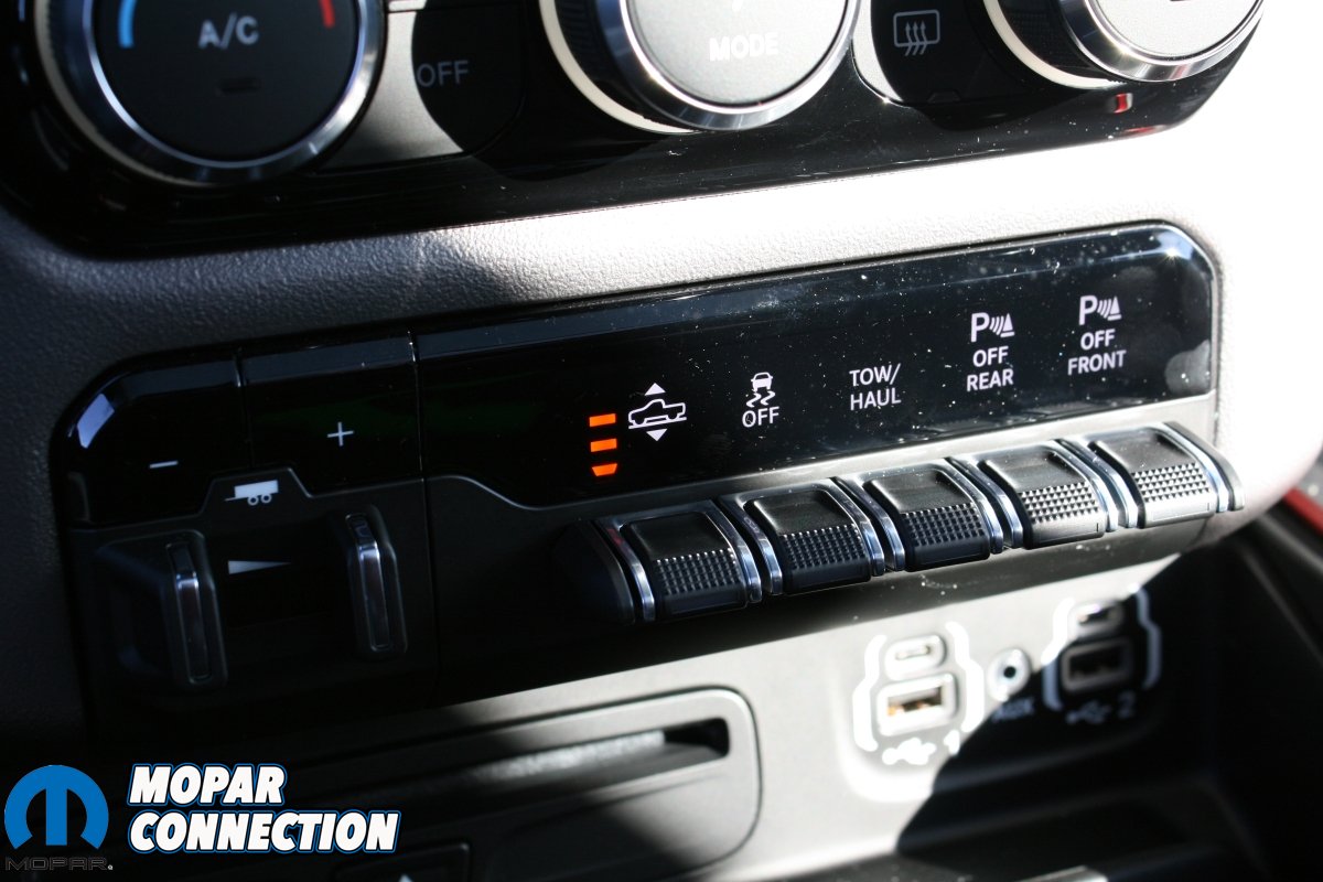 The small storage tray above the Uconnect unit has been made deeper and features a 12V plug so it’s actually useful now. All of the push buttons for the air suspension, traction control and ParkSense systems have been replaced with attractive toggle switches. In the back, the cab on the Crew Cab models has been slightly extended for more room. When the rear seats are folded up, the rear floor of the truck is completely flat for tons of room to load boxes and the like-wise. The rear in-floor storage bins have also been made slightly larger.