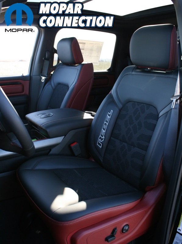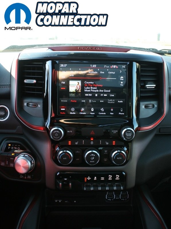 The new six-gauge, gauge cluster is beautifully designed and very functional with it’s 7-inch color reconfigurable TFT display. The designers even went the extra mile and made the Rebel logo light up red! Options for the interior include the new power dual-pane panoramic sunroof (only available on the Crew Cab), a single pane power sunroof (only available on the Quad Cab), a 9 speaker sound system with subwoofer, Blind-Spot monitoring with Cross-Path Detection, ParkSense Front and Rear Park-Assist with Stop and remote-start. The Parkview rear back up camera is now standard. Ram has also packaged certain items together in two different packages; the Level 1 Equipment Group is $2,000 USD and the Level 2 Equipment Group is $3,000 USD.