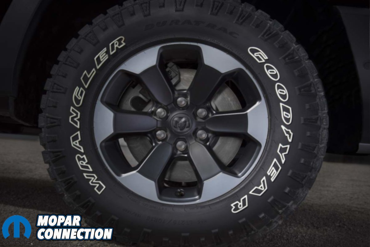 The previous 17×8” wheels and Toyo Open Country tires have been replaced with new 18×8” wheels with 275/70R18 Goodyear Wrangler DuraTrac tires for the 2019. The DuraTracs came standard on the recent 2500 Power Wagons and are reported to be fantastic tires with previous generation Rebel owners actually switching their Toyos out for them in some cases. These tires are absolutely awesome for traction and grip off-road while at the same time giving you comfort cruising down the highway and give almost no road noise.