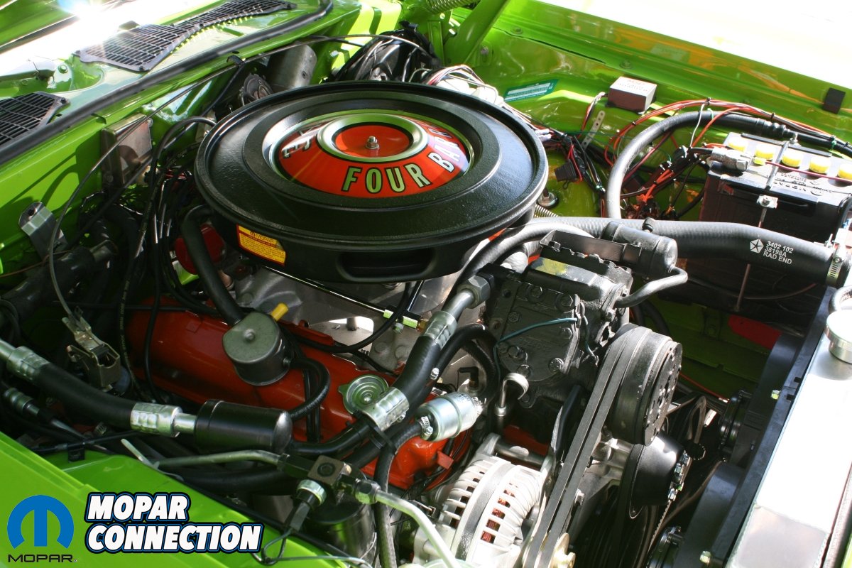 Backing the stroker is a 727 Torqueflite automatic transmission that has been upgraded with a Stage 2 shift kit and 3000 RPM stall converter. It’s backed by a factory 8 3/4 rear end fitted with a Sure-Grip 489 case third member and 3.91 gears. It rides on 15×7 Rallye wheels on all four corners wrapped in BF Goodrich Radial T/As; 245/60R15 up front and 255/60R15 out back for a slightly staggered appearance.