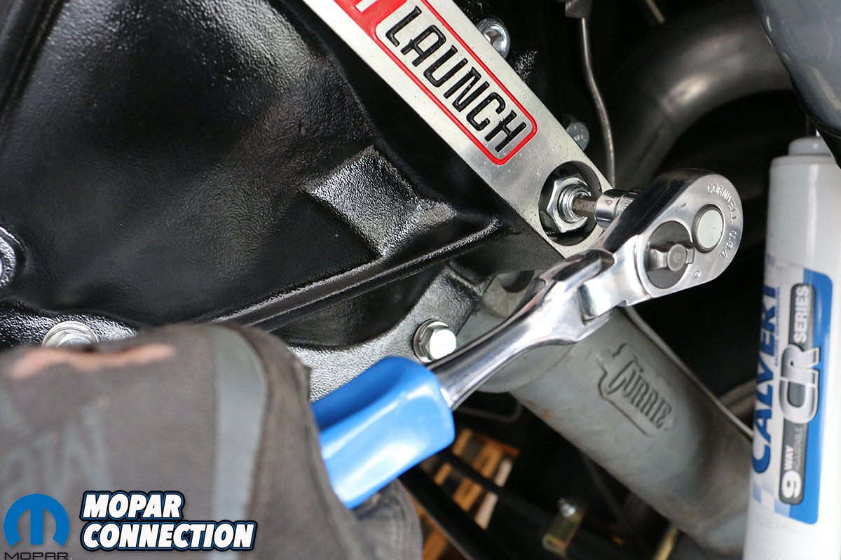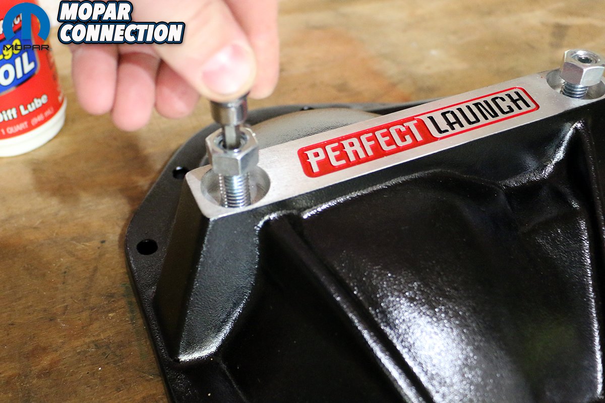 Now, before you roll your eyes wondering what good a new differential cover can do, note that the Perfect Launch has a few tricks up its sleeve. The aluminum casting is unusually stout, with a thick mounting flange, webbing that buttresses the milled cross section (displaying the “Perfect Launch” logo) that also houses two Allen-headed bolts ending in large swivel pads (ie. feet).