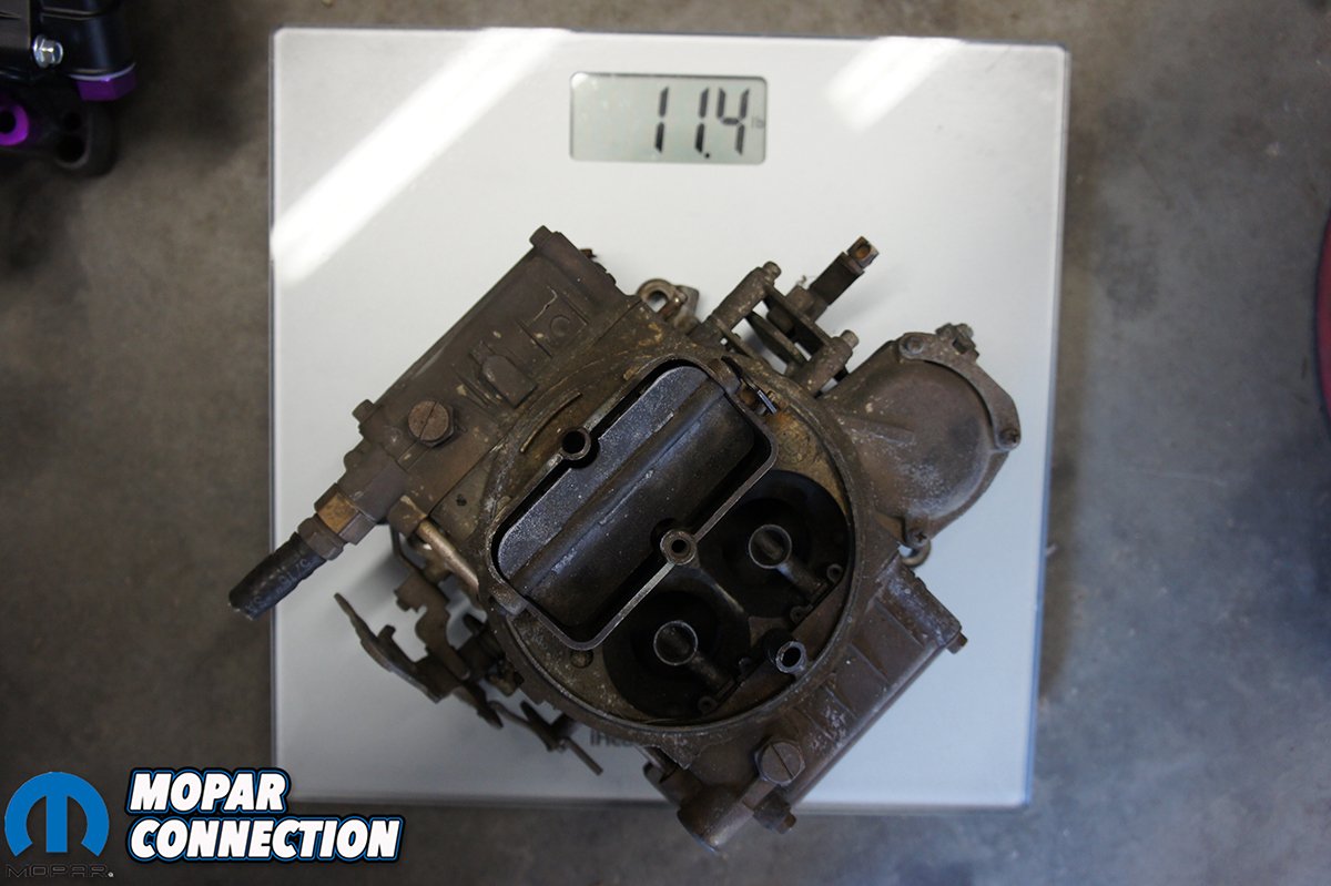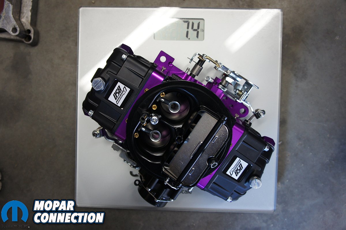 Above Left: Proform Parts’ Black Diamond 850 Street Series Carburetor weighed in at 7.4lbs. Above Right: The basic stock style cast steel carburetor weighed in at 11.4lbs, which was 4lbs heavier.