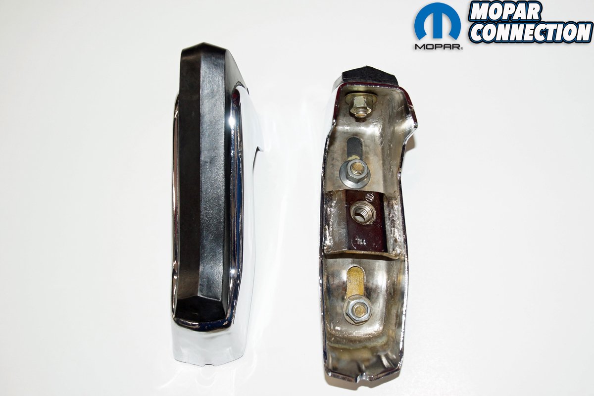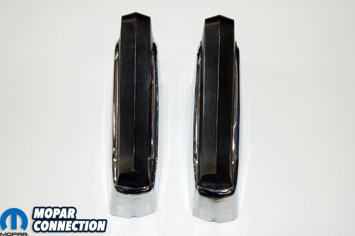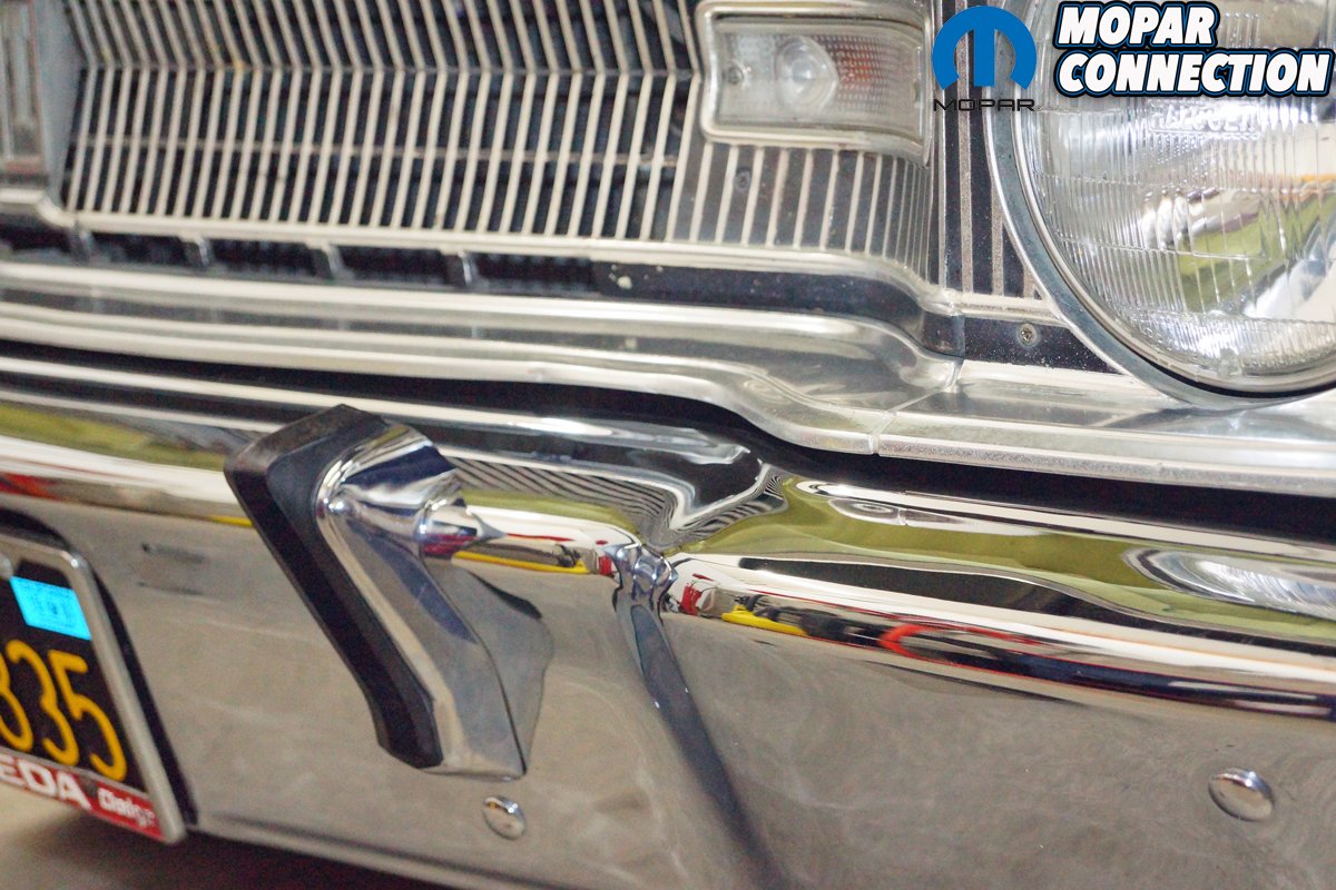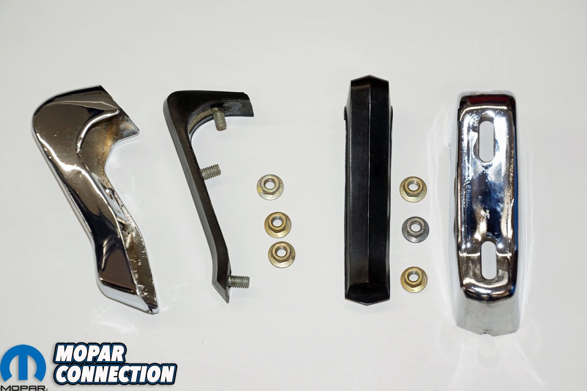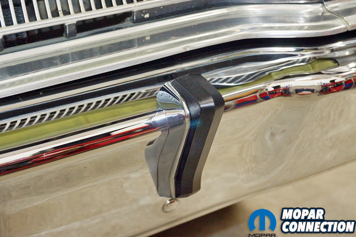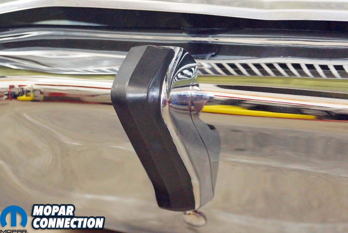 While we were pleased to find the rubber bumperettes, we still needed to find the chrome bumper guards. After an extensive internet search over a period of several months, we found two New Old Stock (NOS) bumper guards (one left and one right) from two different vendors on eBay. Both bumper guards showed up in the original Mopar packaging, and each had a flawless chrome finish. The bumper guards arrived with the hardware required to mount them to the front bumper.