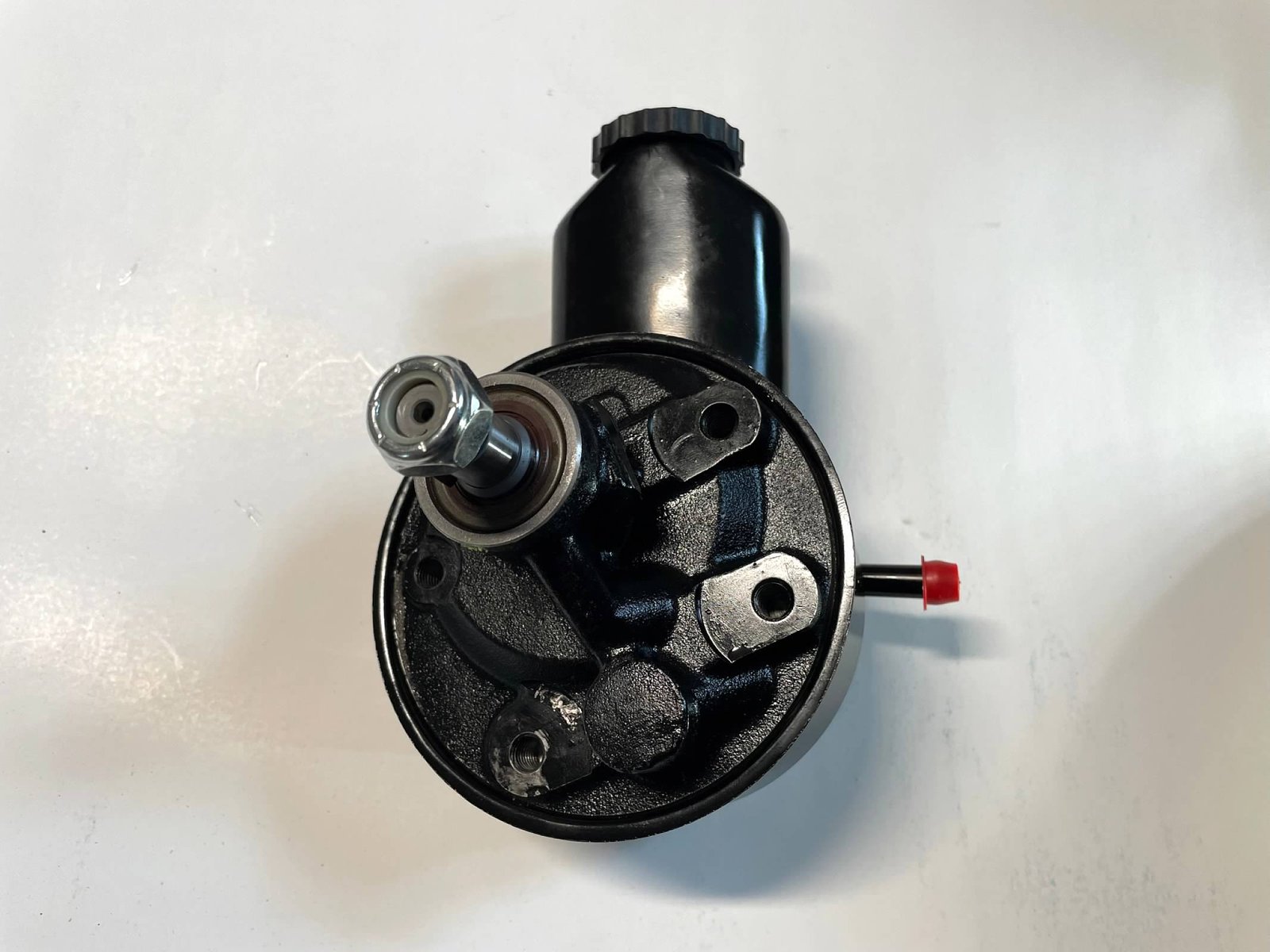 Mine had a TRW pump that leaked. Rather than sending it off to get built, I bought a set of Saginaw brackets from Bouchilon and mounted a Saginaw pump from a ’78 Olds I had left over. I was afraid I might have to change the pressure valve but it worked out fine. The steering is not so touchy any more and no leaks.
