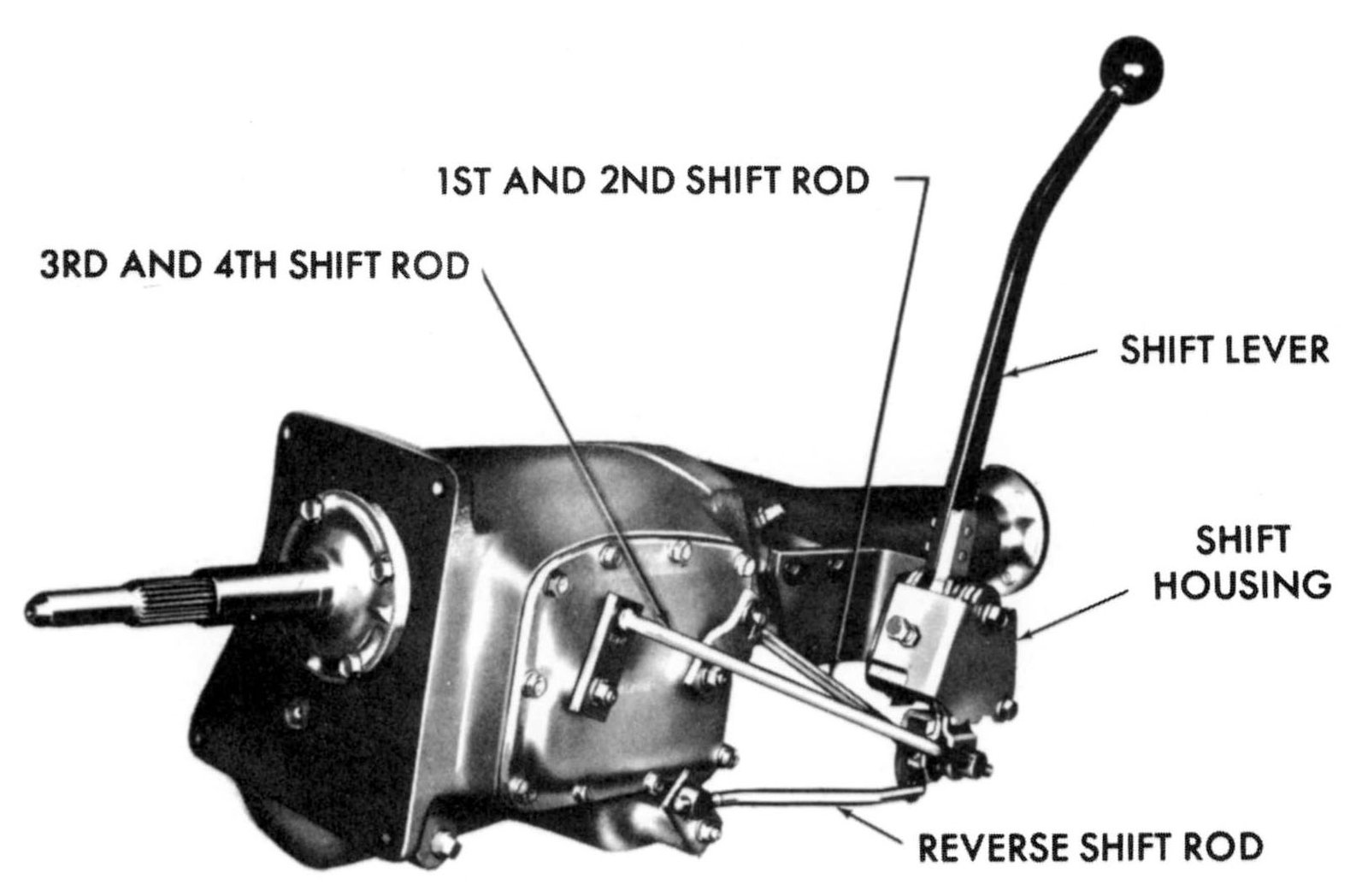 Between the two versions the main differences were the extension housing and main shaft lengths, low-gear ratio and rear-flange size. The small car transmission has a 3.09-to-1 low gear, for obvious reasons. A big first gear gives smaller engines a jump off the line.