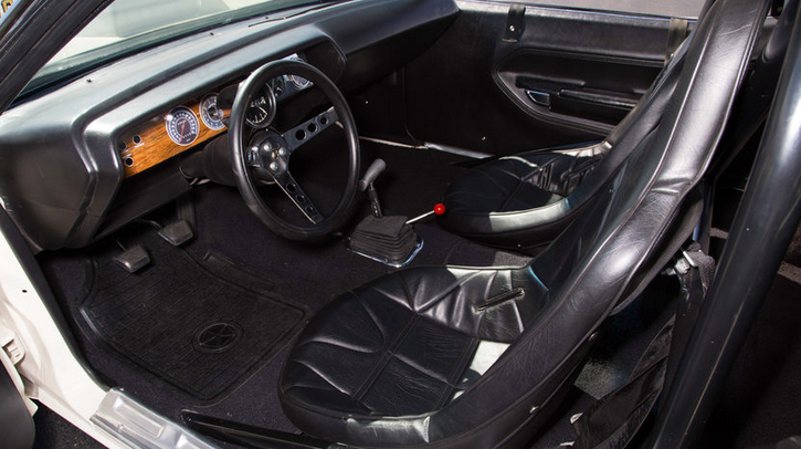 For horsepower, a built 426 Hemi iron short-block received all the best circa-1971 parts; these included the authentic aluminum twin-plug Chrysler cylinder heads fired by paired magnetos, dual #6214 Holley Pro Stock-designated carbs with milled-down air horns, the Weiand high-RPM design intake manifold with quenched plenum area, and a Crane cam custom-ground to secret 1971 Sox & Martin specs among others. Behind this went a Chrysler aluminum-case New Process 4-speed; the design Ronnie Sox swore by in taking wins, and a bulletproof Dana 60 with 5.57 gears finish the driveline. Vintage Hurst Airheart brakes still stop the car and it rolls on it’s legendary Keystone Klassic wheels.