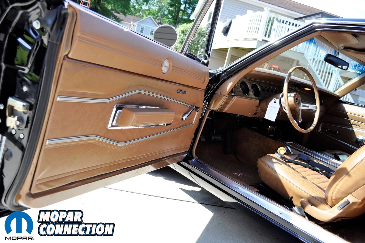 In closing, Bill says, “Over the next 7 years, I’ve continued to perfect the restoration as this ’70 R/T has a huge spot in my heart and will be with me forever. It’s not very often where you find a muscle car in as good of shape as this car was. I have friendships with all of it’s previous owners before my dad and many great stories have been shared highlighting the cars history. I restored it back to it’s original condition and options. It came from the factory wearing TX9 Black paint with tan interior and a red bumblebee stripe. A rare combination for sure! Options included power disc brakes, power steering, AM/ 8 Track radio, A33 Track Pak, A01 Light Group, center console, front bumper guards, 15” Rallye wheels with F-60 Goodyear Polyglas tires, 3-speed wipers, hood pins, woodgrain steering wheel and a Tic-Toc-Tach. According to Galen Govier, non-vinyl top Chargers were unique in 1970 and only two other black examples have been documented besides mine. It’s also the only documented 1970 TX9 Black, 4 speed non-vinyl top car with saddle interior in Galen’s registry.”