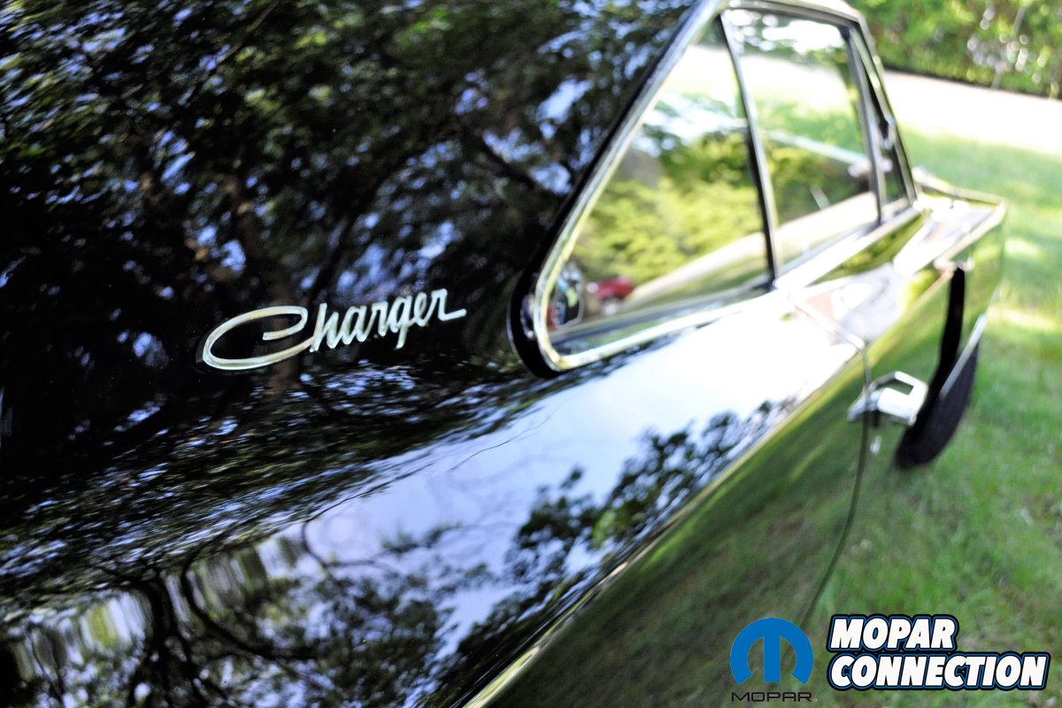 Dave Zang, a local retired body shop owner took on the job of respraying the Charger in a fresh coat of TX9 Black. Ten days later, Bill got the car back and immediately began assembly. The original stainless was quickly polished and re-installed, the original glass was re-used and all of the original interior was re-installed with the exception of new carpet and a new driver’s seat bottom. Bill meticulously detailed the heater box, gauge cluster, pedal assembly, steering column and so-on. All the factory markings were retained and replicated and by the end, every component was restored to show quality and the car was once again ready to hit the road by the Spring of 2009.