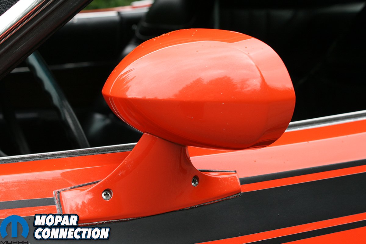 While the fire damage was minimal and was contained to the driver’s rear corner of the interior; the body shop ruined the entire brand new interior by emptying a fire extinguisher into the car. Once they completed the body work and painted the exterior in a shiny coat of Hemi Orange, Mark brought it home and started re-assembling the car which included all brand new interior pieces courtesy of the body shop’s check book. Mark says he built the car to his personal tastes so he added the front and rear spoiler package, dual painted mirrors and the floor mounted cassette player. While it was originally equipped with buckets and a console, Mark converted it the buckets and buddy seat set-up you see.